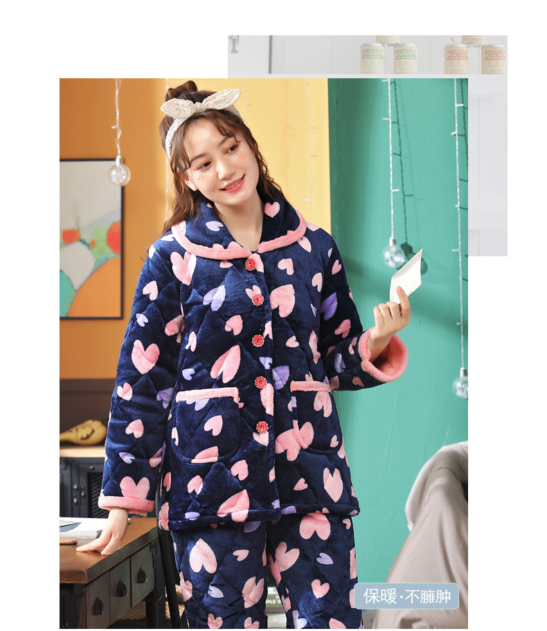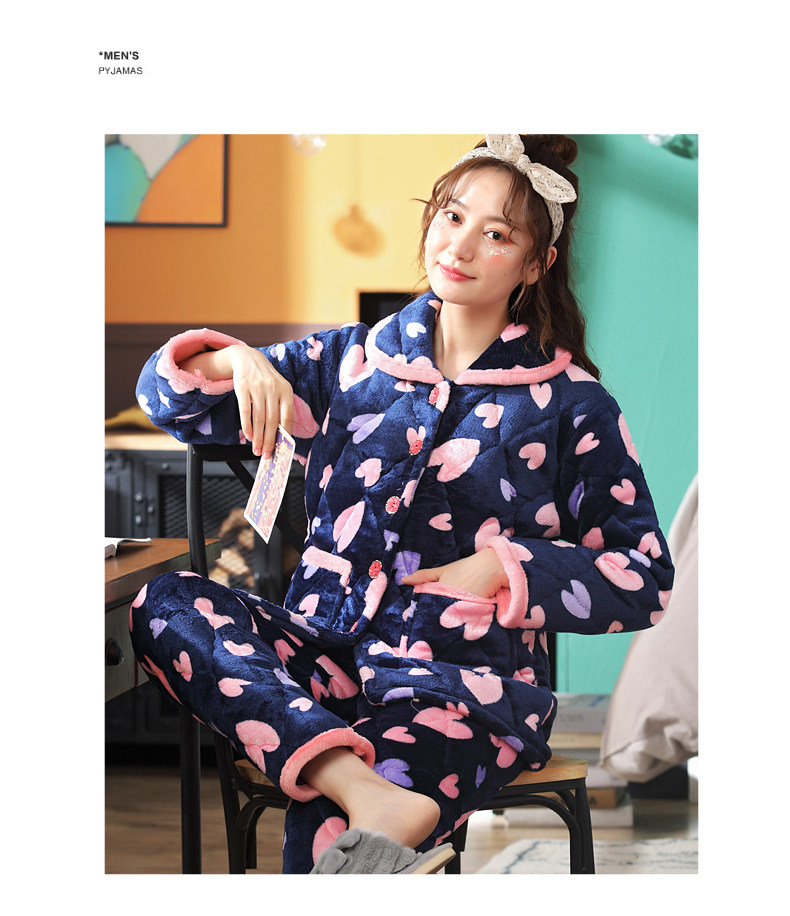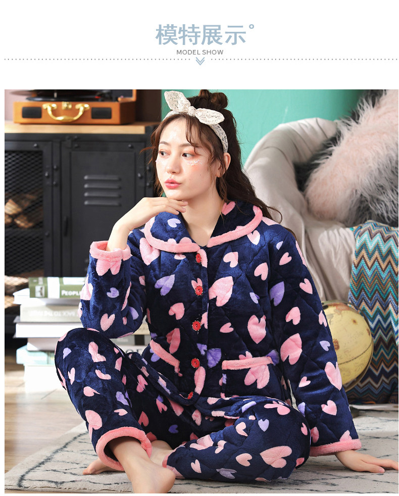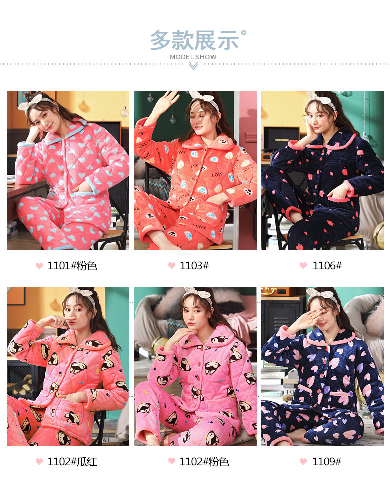 冬季加厚三层夹棉法兰绒睡衣,柔软亲肤,保暖性好,清新脱俗,款式高档,居家必备,多种款式,一件顶三件,你值得拥有~【赠运费险】