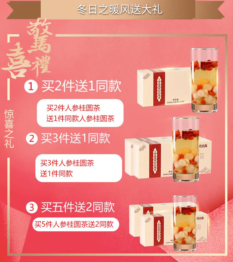 【买2送1】福东海人参桂圆红枣枸杞茶八宝茶,质检严格、放心选购,非渣碎不掺假,优选六种原料、科学配比,无添加,口感清香回甘,每天一杯,喝出健康好气色,无湿一身轻,除湿就是这么简单!