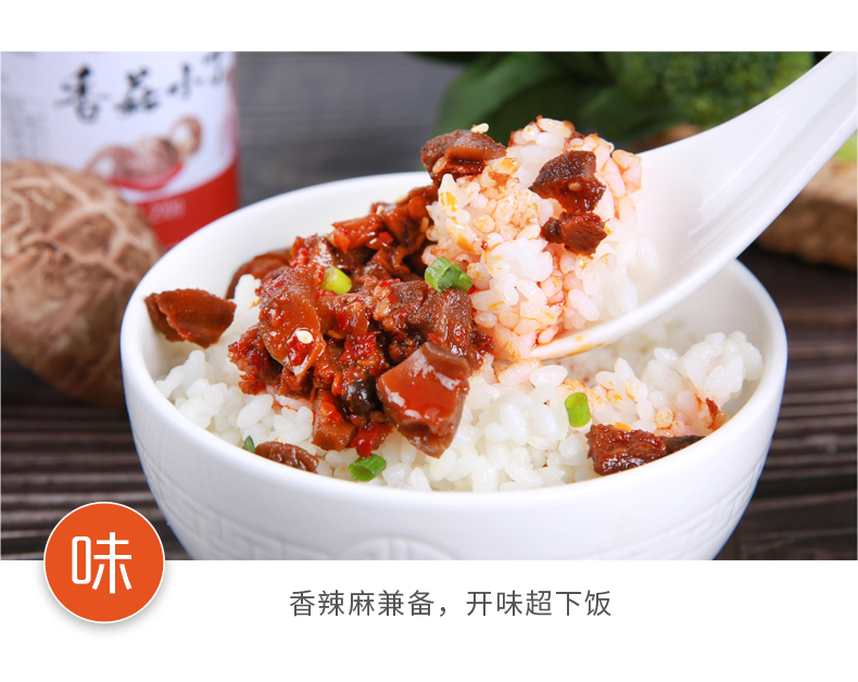 源自伏牛山世界地质公园核心区,菇质密实,肉厚丰满,具有特殊的鲜香与质感,堪称“菇中珍品”。红油浸润,色诱味蕾,看到就想吃下去。