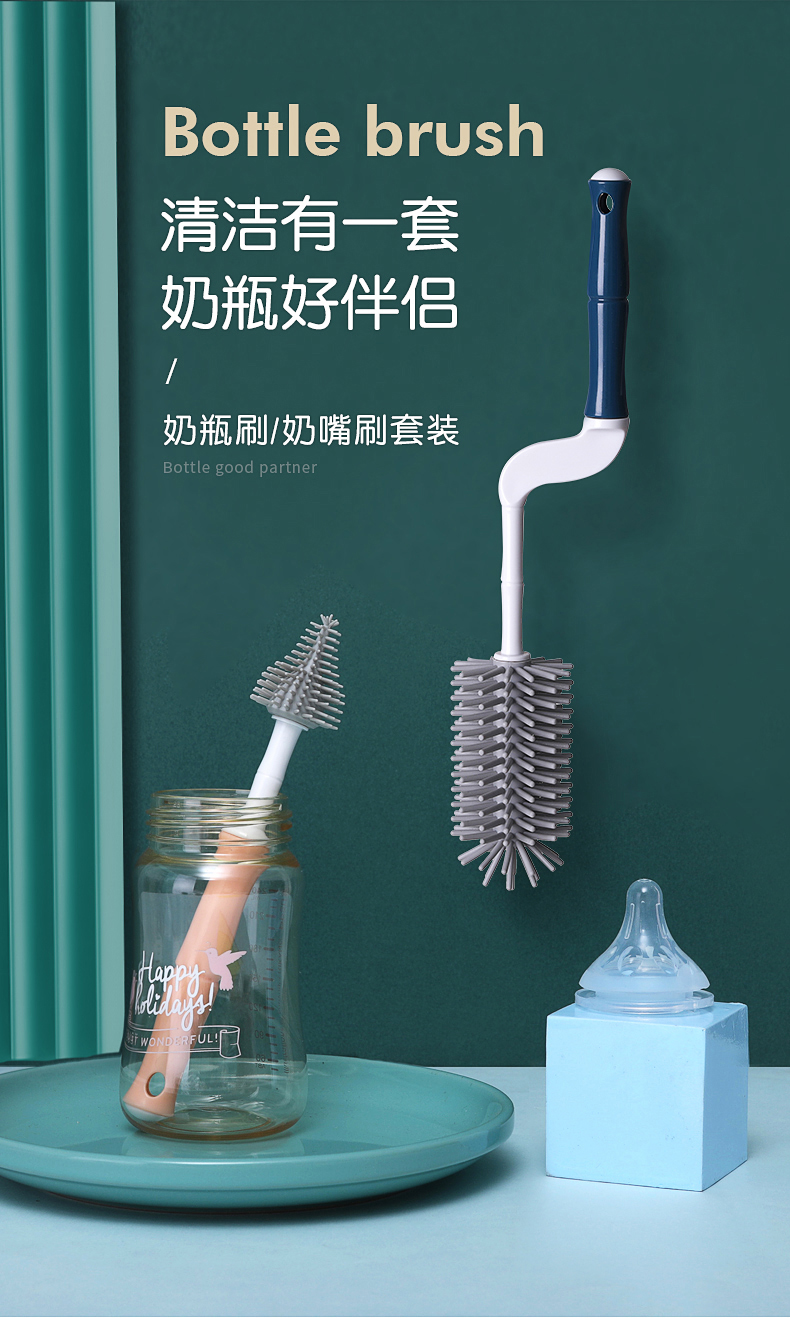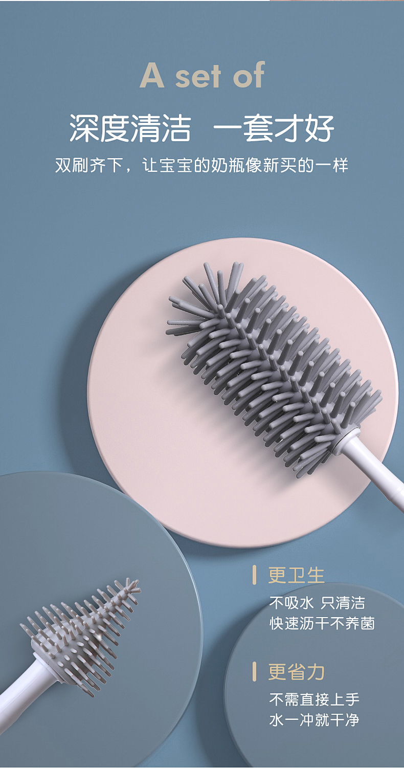 【今日推荐】奶瓶刷,奶嘴刷清洁刷套装,食品级硅胶,新生婴儿奶瓶刷,不含BPA,便携清洗360度旋转,不积水不发臭,一甩即干不藏细菌!