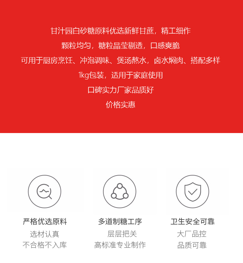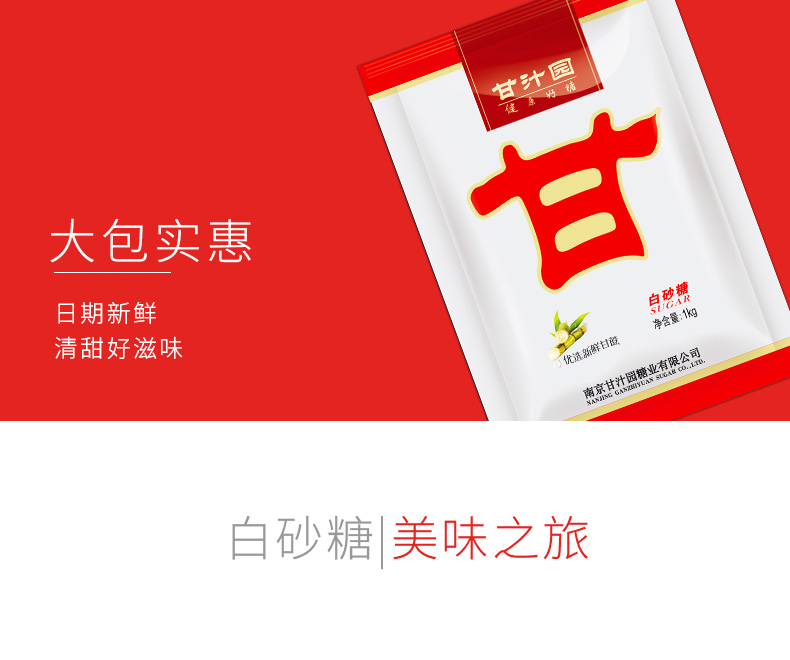 【专业制糖30年】甘汁园白砂糖,颗粒均匀易溶解,细腻,色泽洁白明亮,口感甜腻,纯度高易储存,超值2斤装,居家必备!【增运费险】