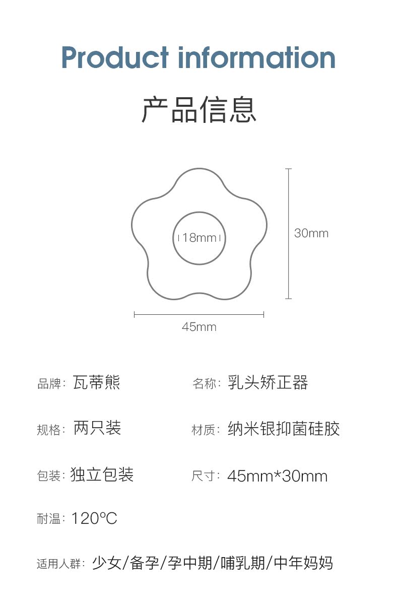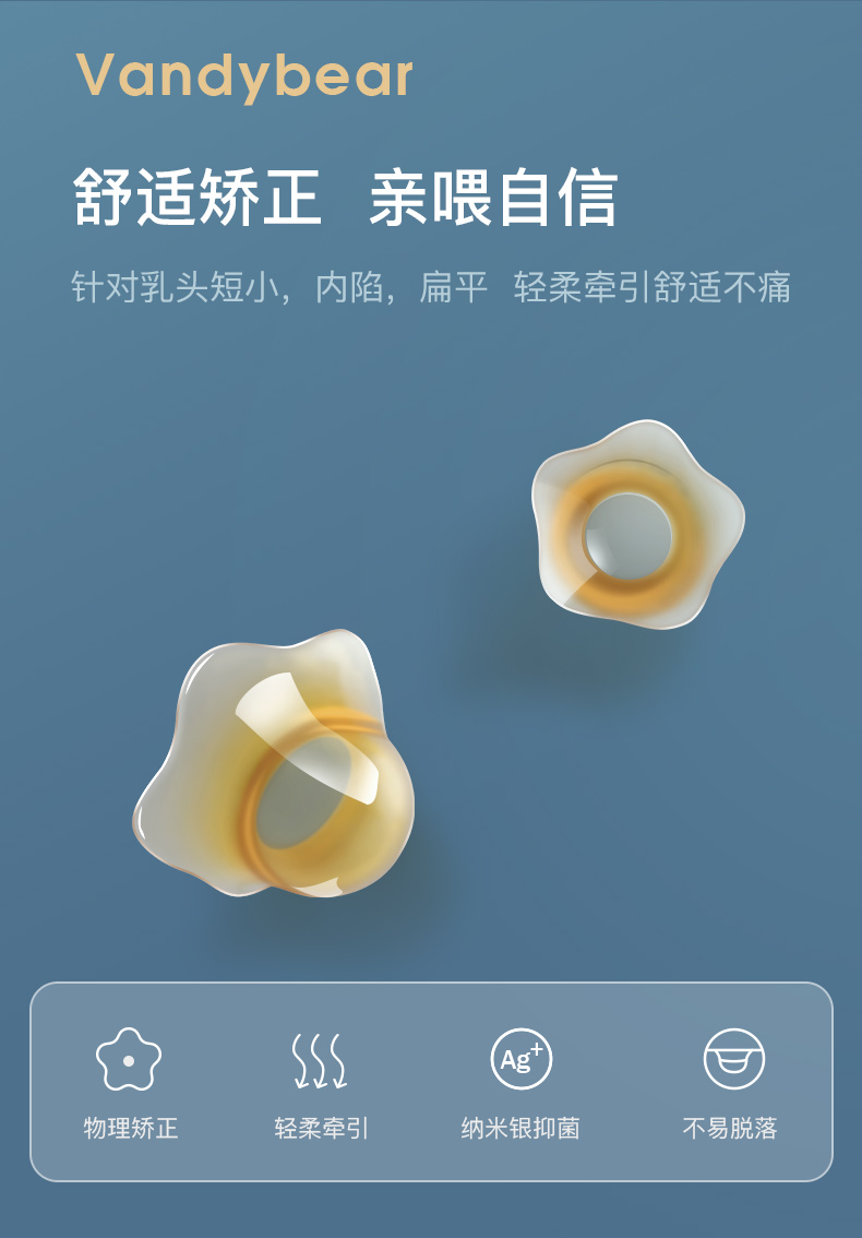 【两只装19元】精选德国瓦克奶嘴硅胶食品级纳米银抑菌材质,一体成型可高温消毒。花瓣式渐变边缘,增加接触面积,受力均匀,轻柔牵引平滑弧度,可穿衣佩戴。物理矫正关爱女性,给你好的,从“它”开始。
