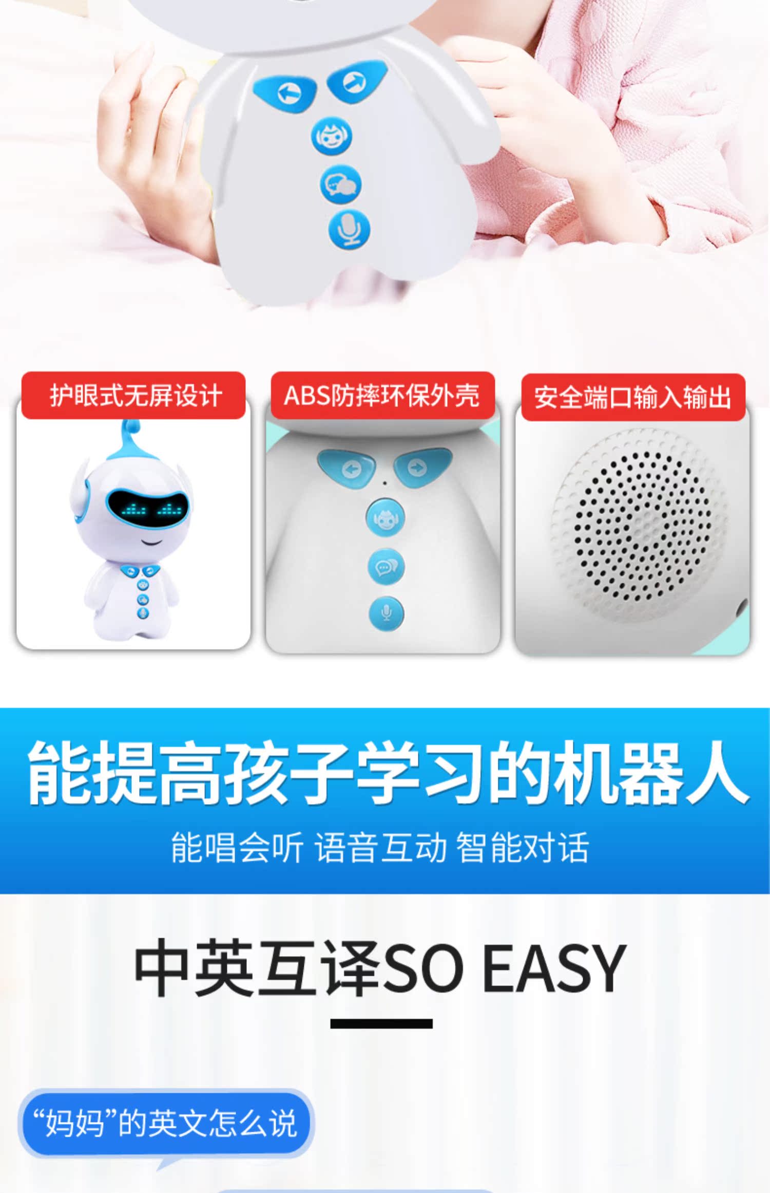 海量正版早教内容,可连wifi同步学习功能,家长后台推送内容,中英互译,宝宝的知识库,丰富功能总有一个满足你的需求,从启蒙到成长,给孩子一个美好的童年!【赠运费险】