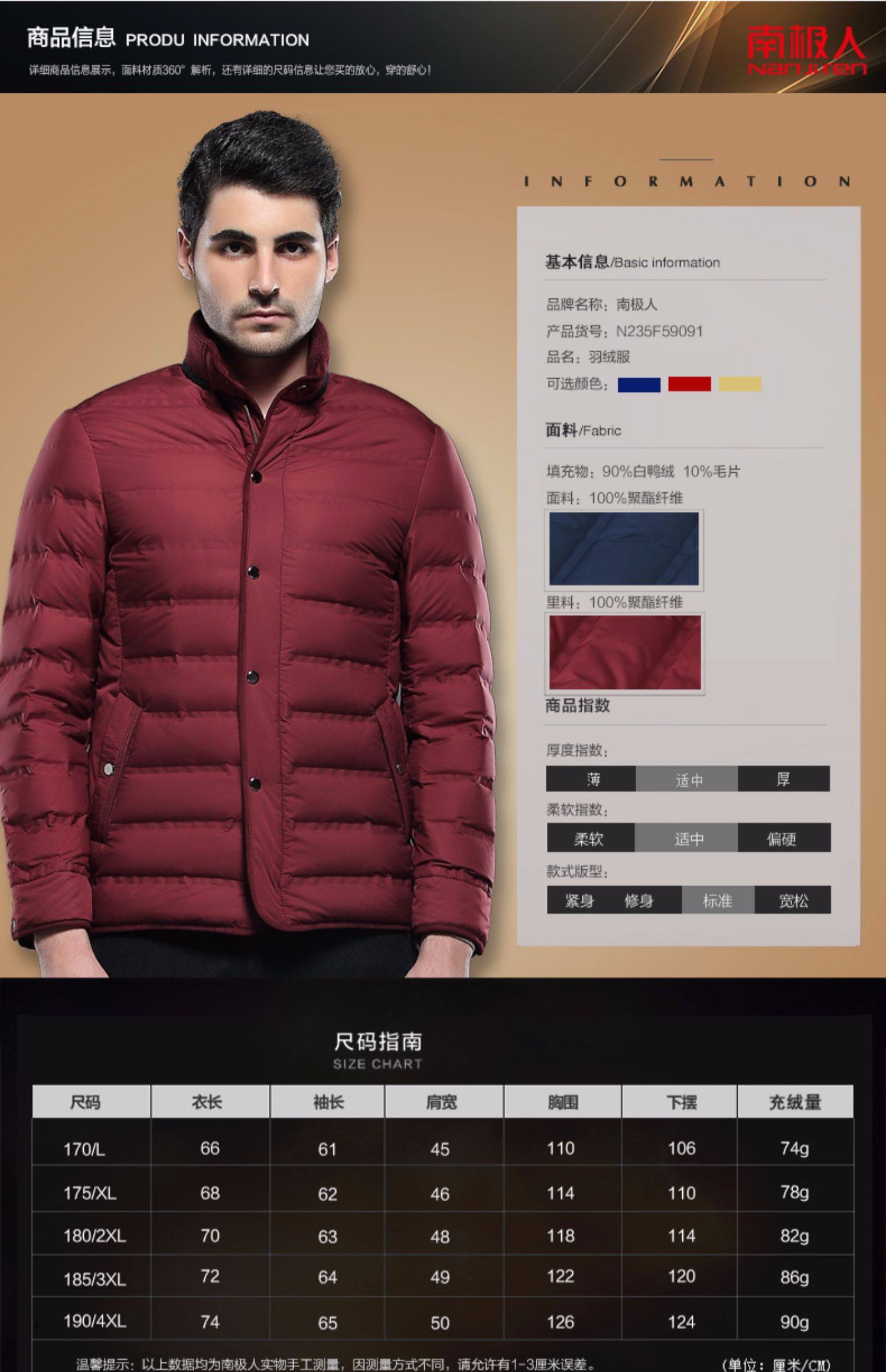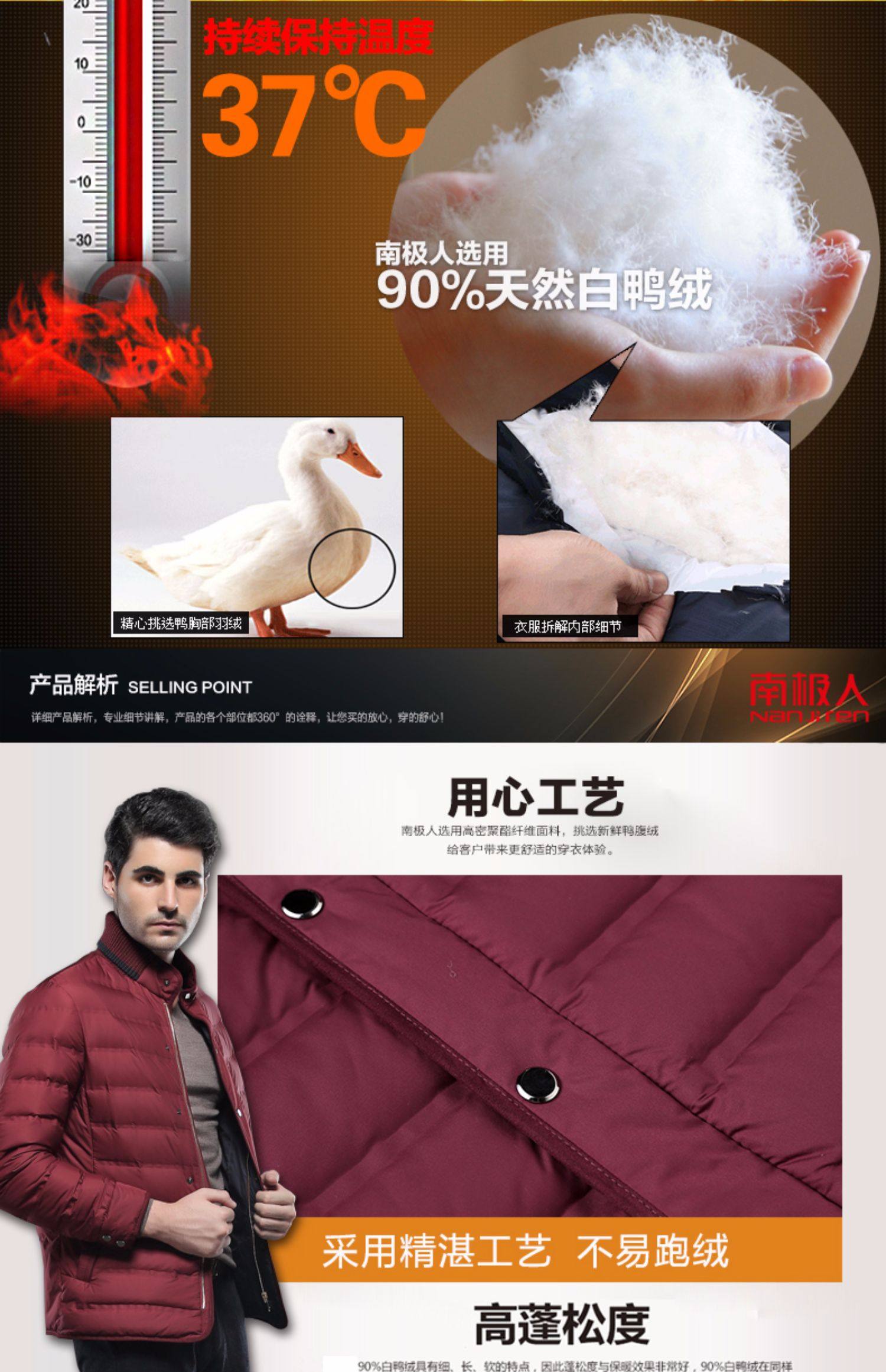 南极人轻薄款短款羽绒服中青年男装