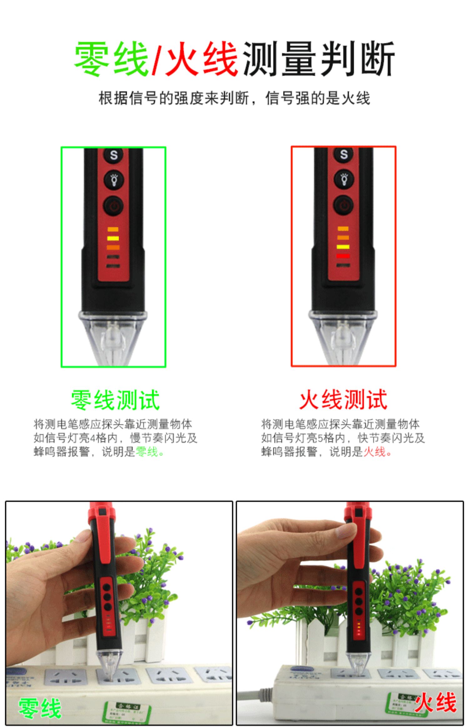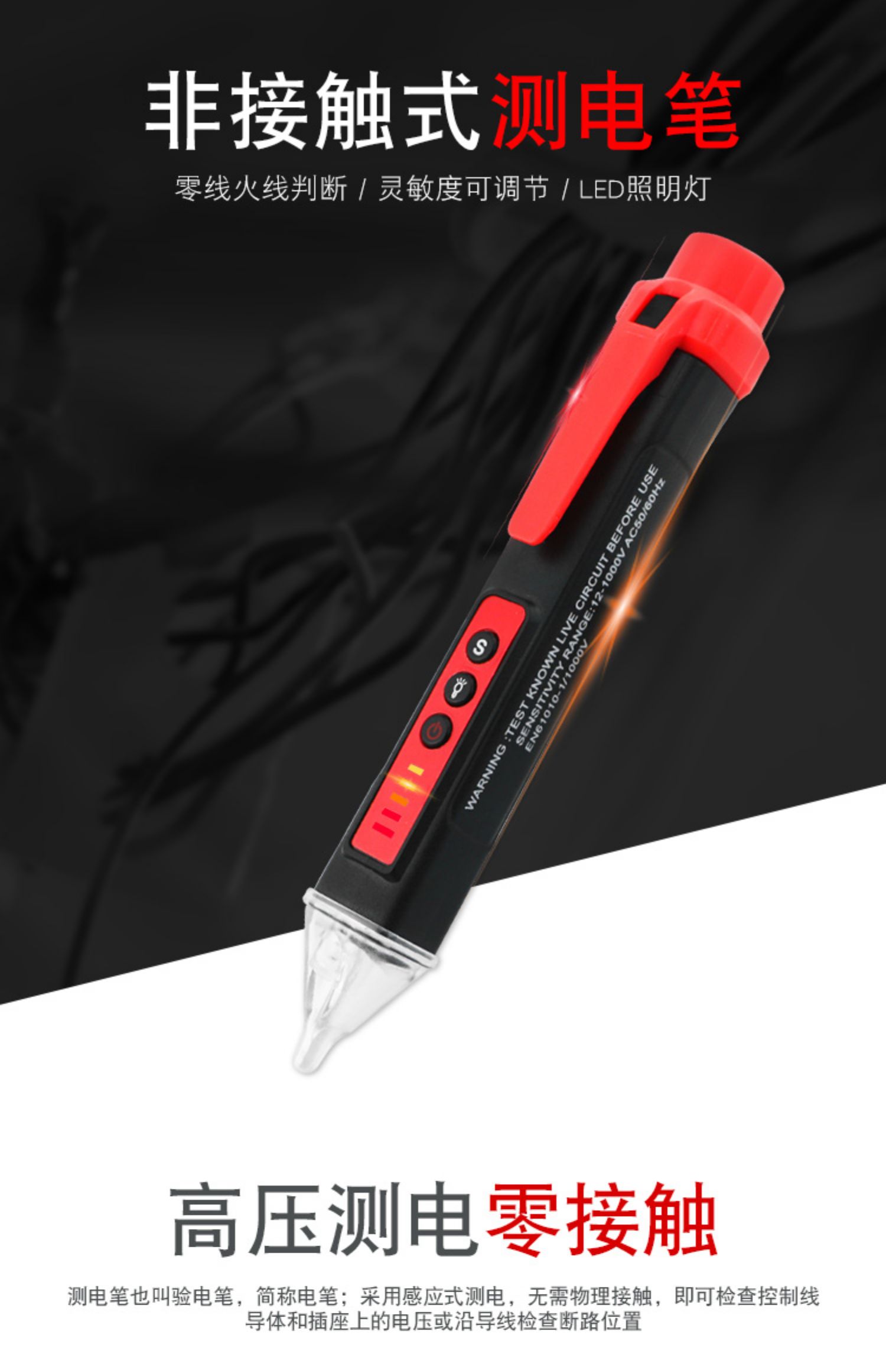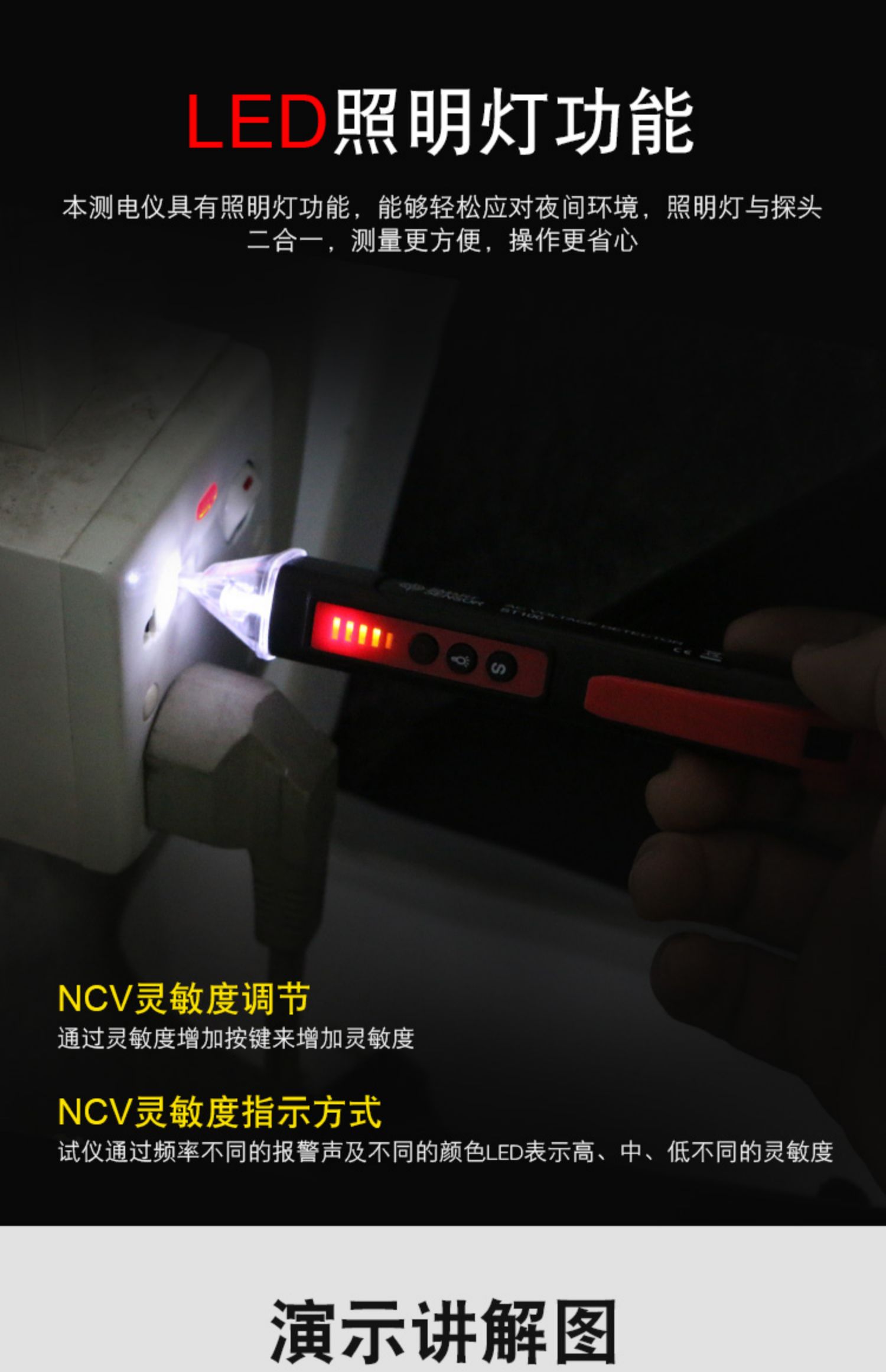 非接触式测电笔,零线火线判断,灵敏度可调节,LED照明灯