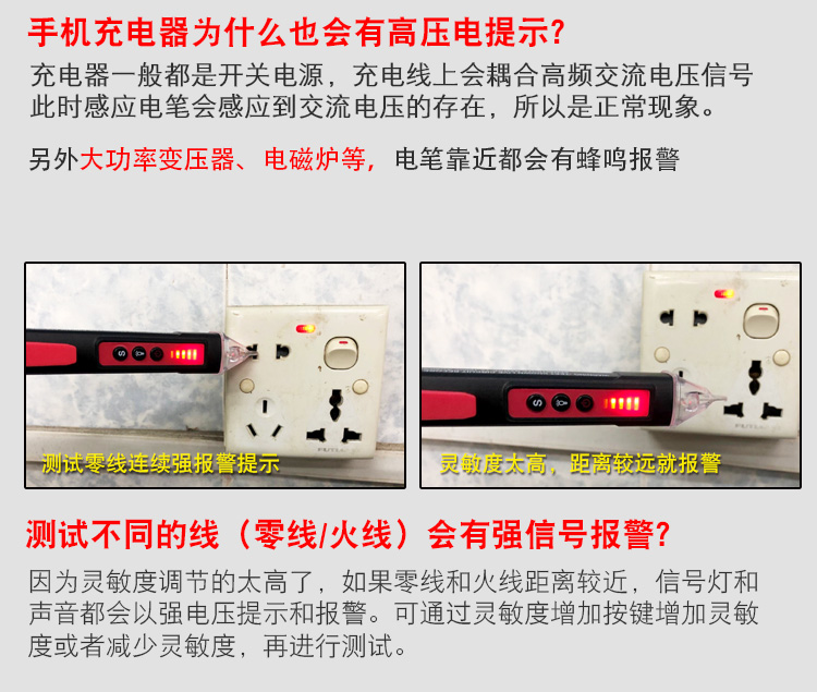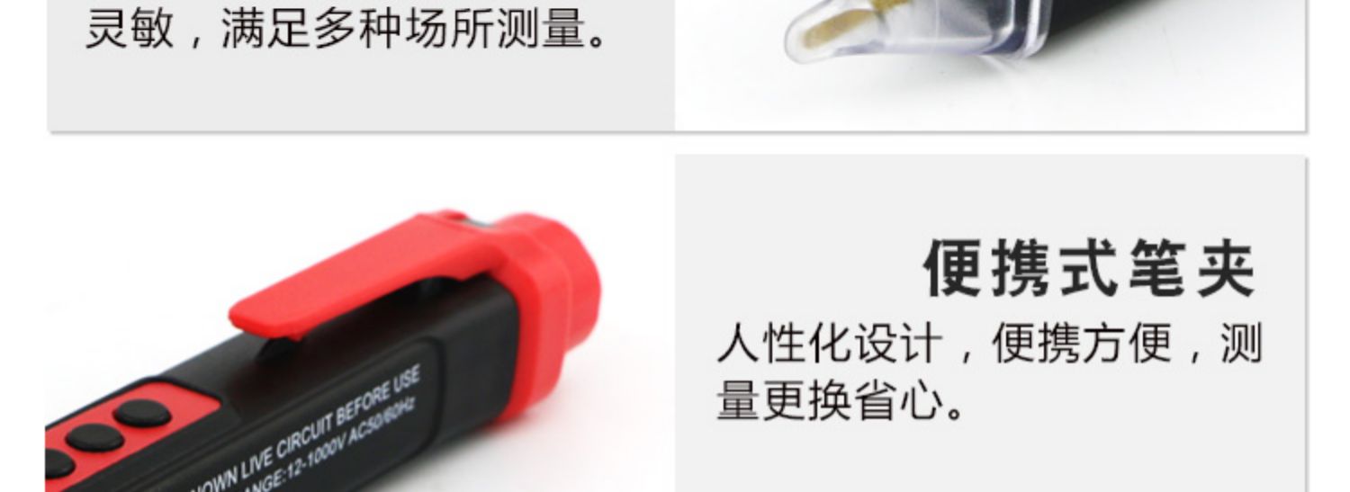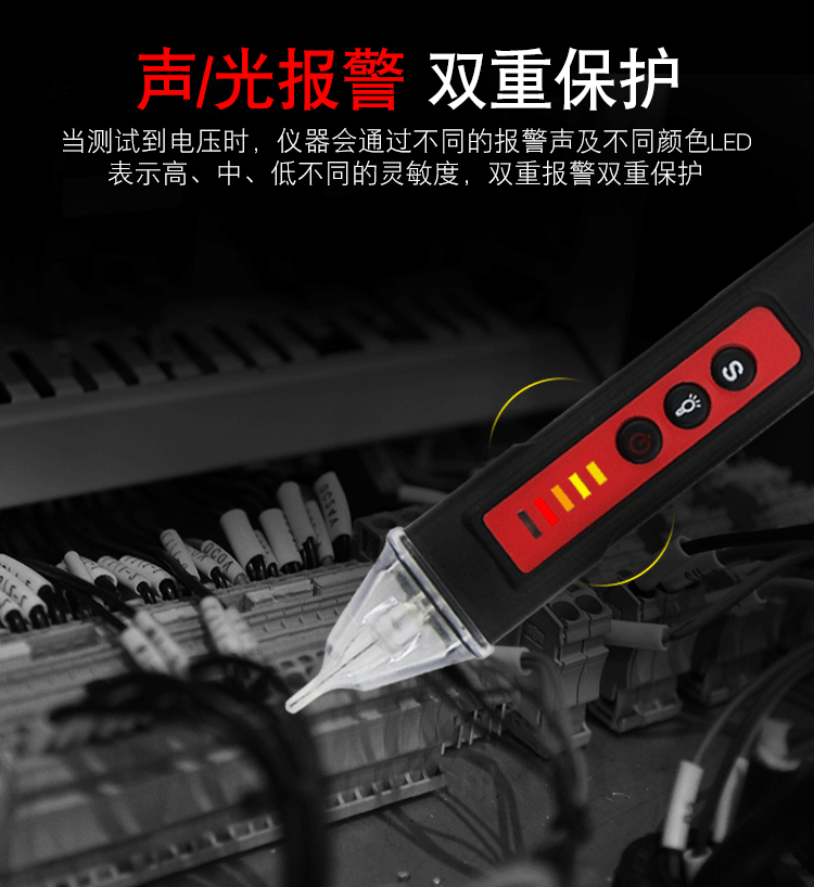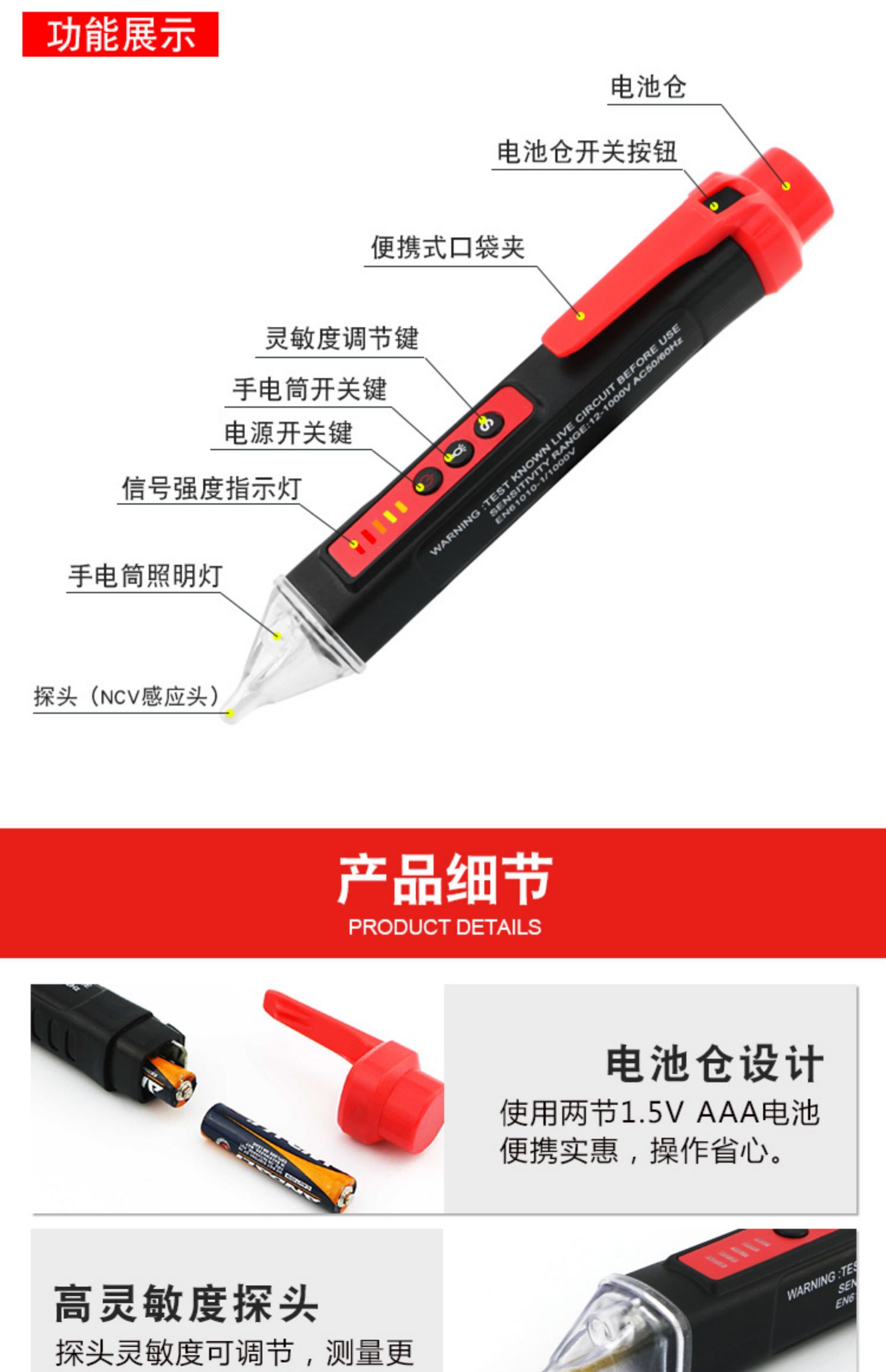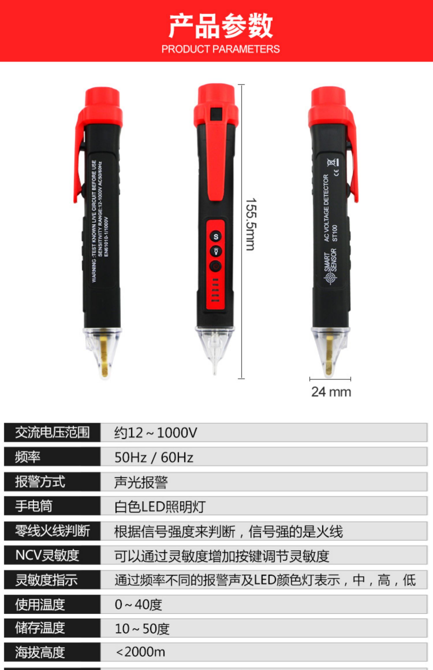 非接触式测电笔,零线火线判断,灵敏度可调节,LED照明灯