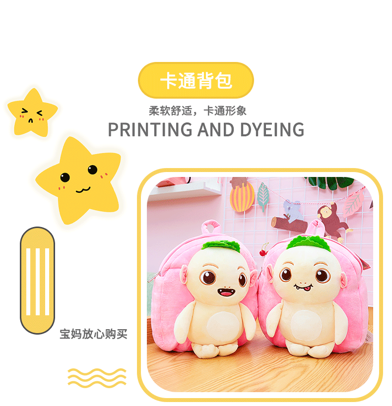 宝宝双肩包,胡巴包包,卡通背包,采用电绣工艺,适合宝宝幼嫩的皮肤,妈妈买着放心,孩子背上很喜欢,都不拿下来。