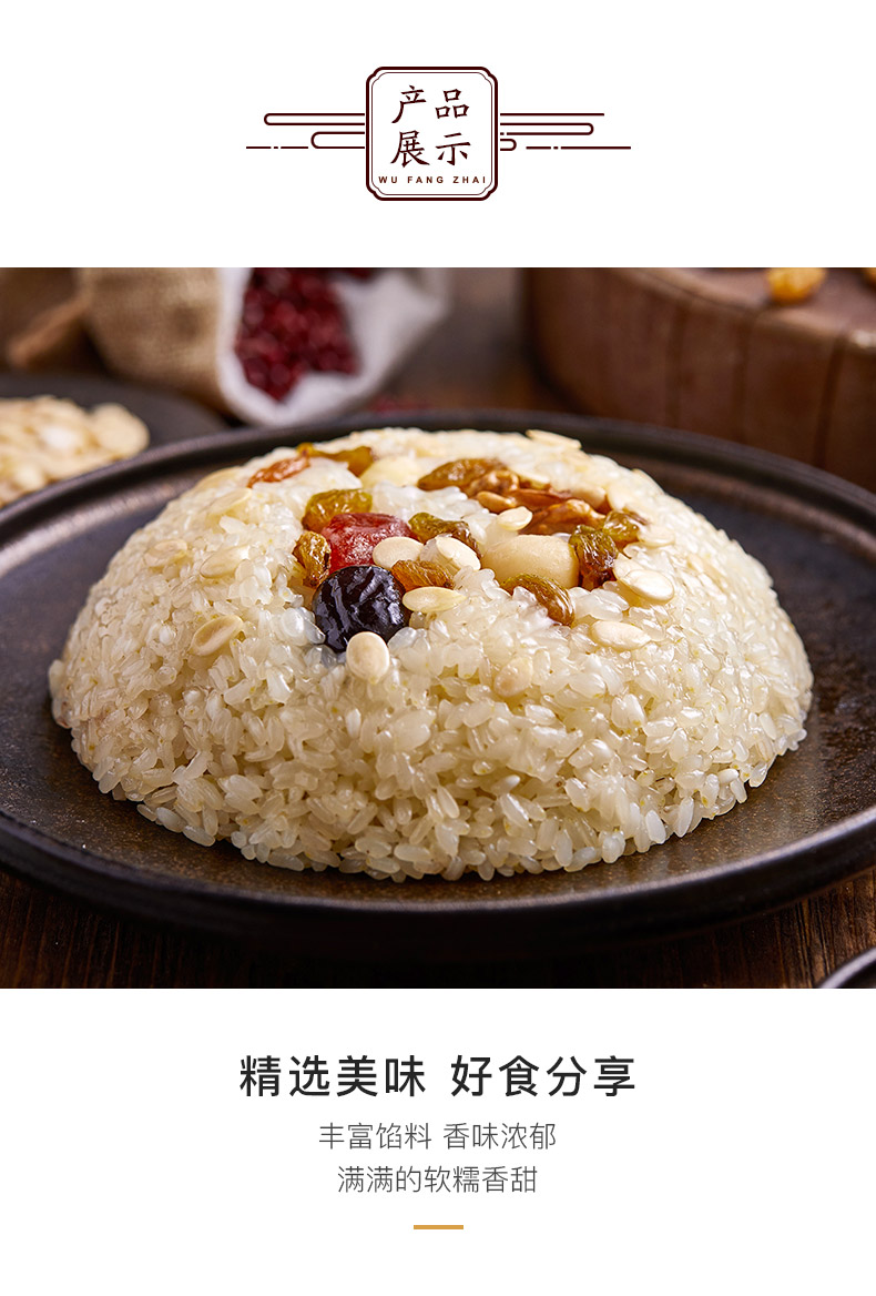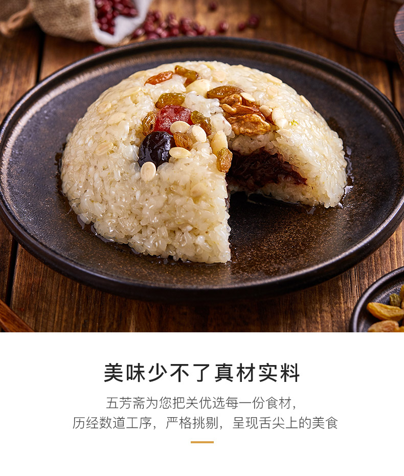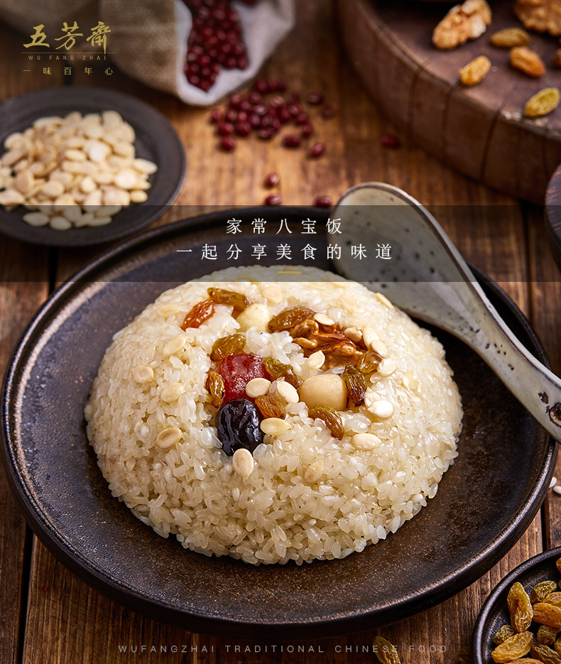 百年传承~正宗五芳斋,缔造品质!色香味俱的美食–八宝饭,浓香糯米,选红枣,红豆,用心做饭只为给你呈现美味体验。