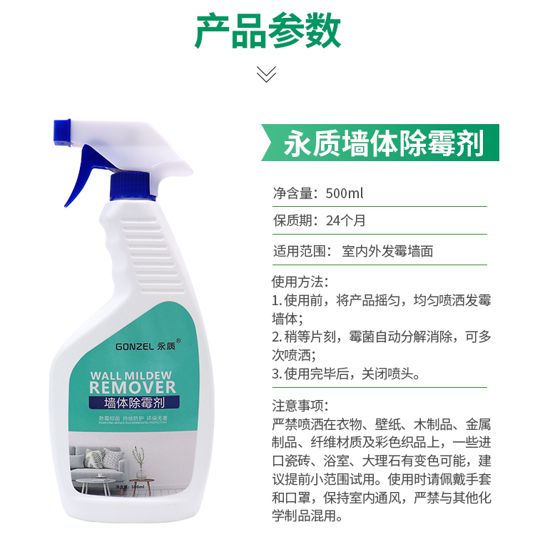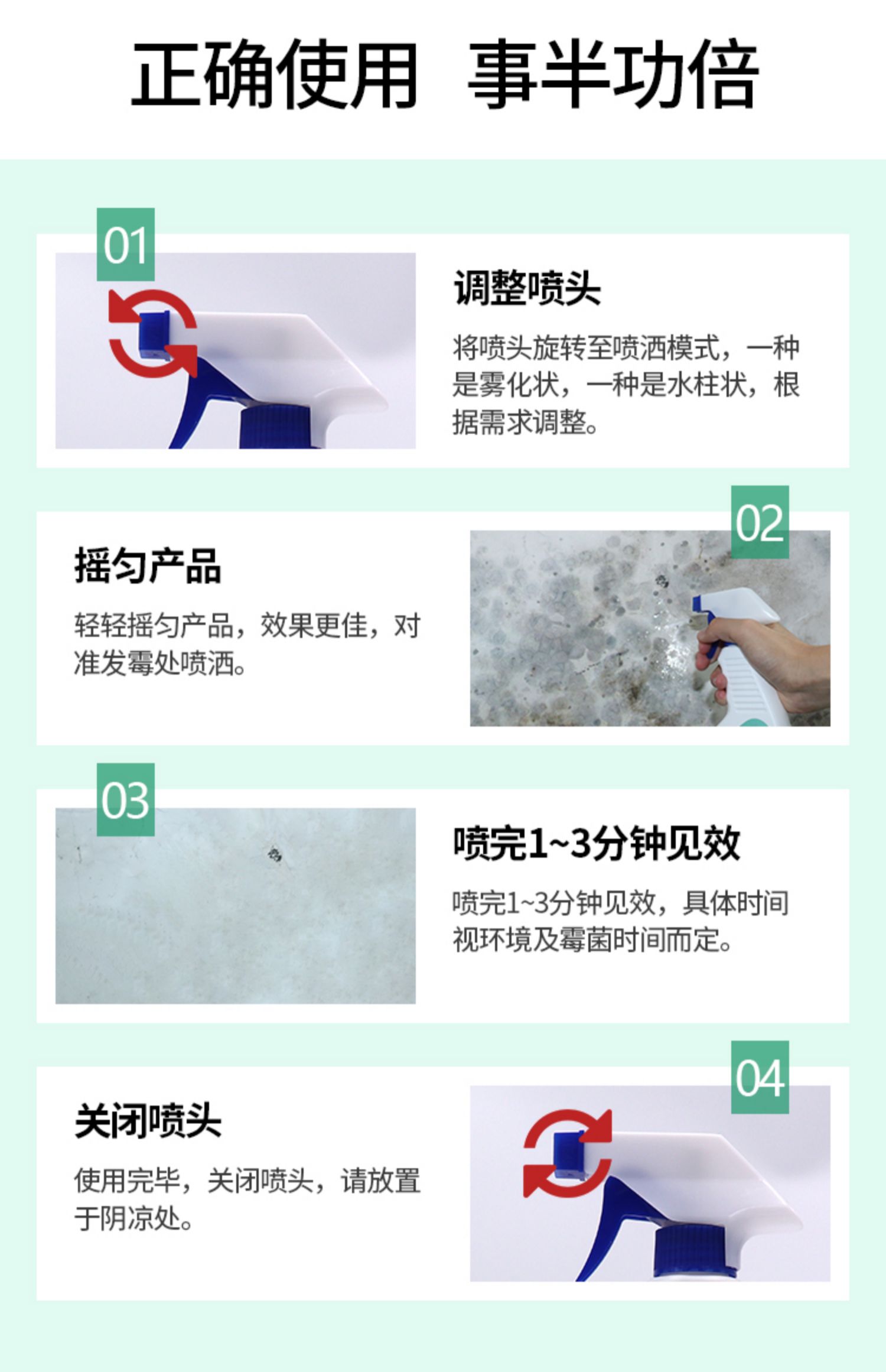 大容量500ml,原装正品,强力除霉剂,快速持久、安全健康、不含重金属,轻松一喷,还你一个干净,健康的环境,强效快速去除墙体墙纸黑毛霉菌!超值!速抢!