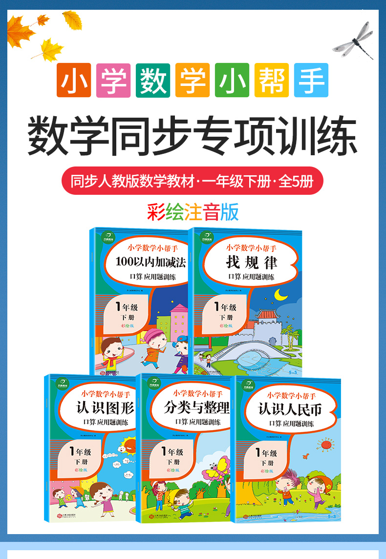【全套5本】一年级下册数学专项训练,专项突破一本全,以专题学习为主,吃透难点,铸造教材全解,以练习自评为特色掌握时间酿造小学天天练。