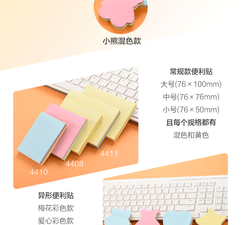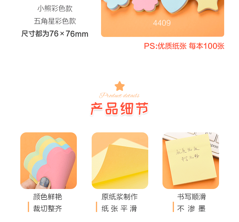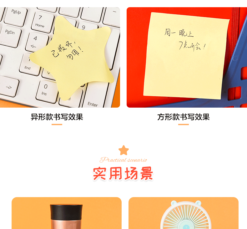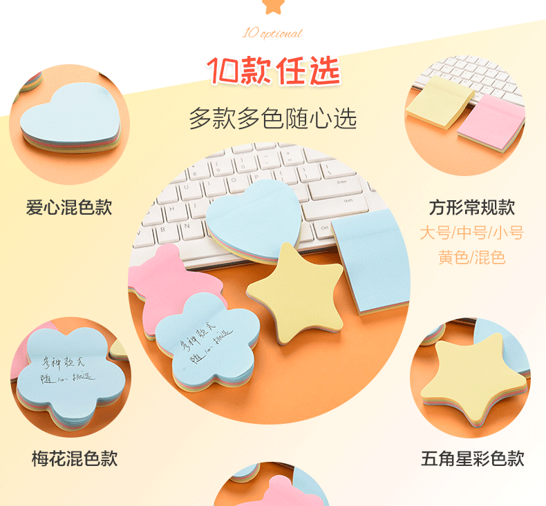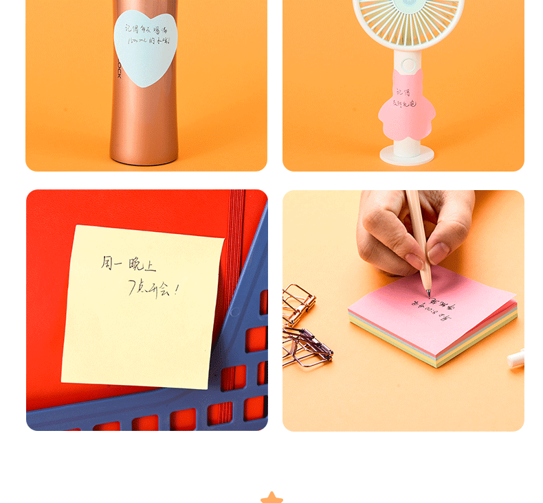 多款可选,优选纸张,手写顺滑不顿涩,不晕墨,多彩造型满足个性要求,强粘力,反复粘贴不掉落。你的生活便利小助手!