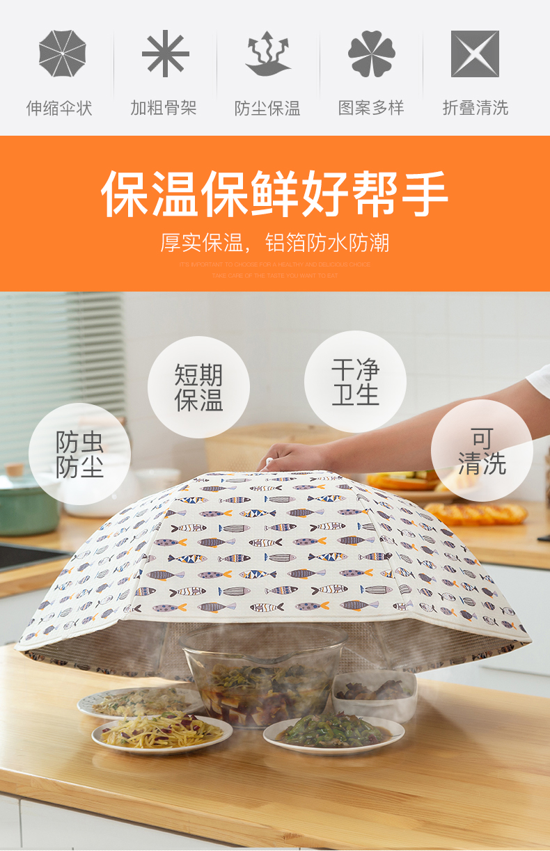 【让饭不凉】冬天保温的菜罩啊!冬季家用保温菜罩,内里保温铝膜全覆盖,加厚保温饭菜还可以防尘,可折叠省空间,耐脏易清洗~