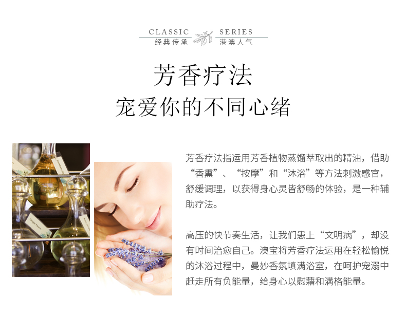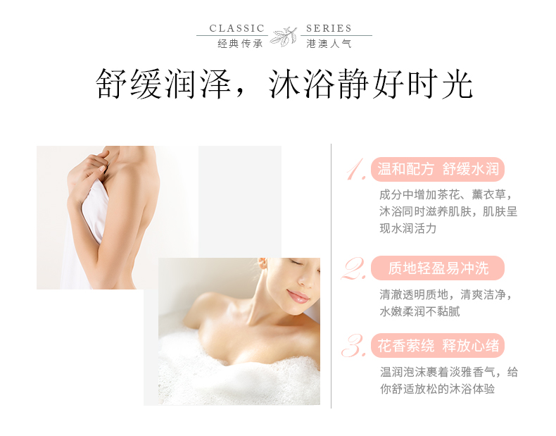 愉悦香氛,经典滋润,茶花润泽,薰衣草舒缓,清洁温柔,呵护每寸肌肤
