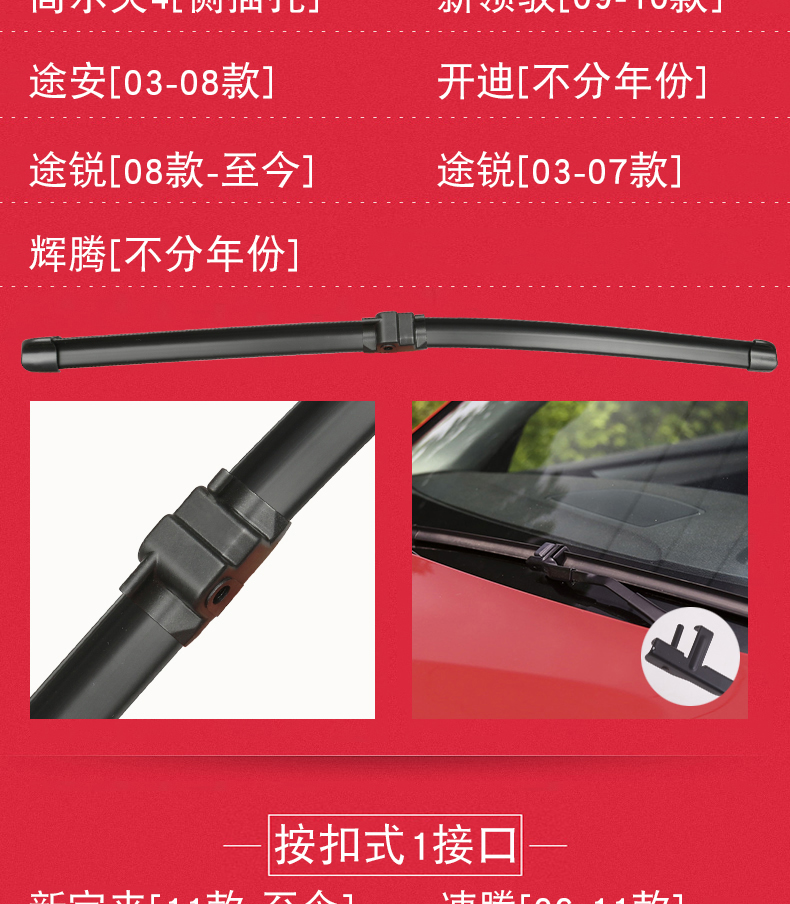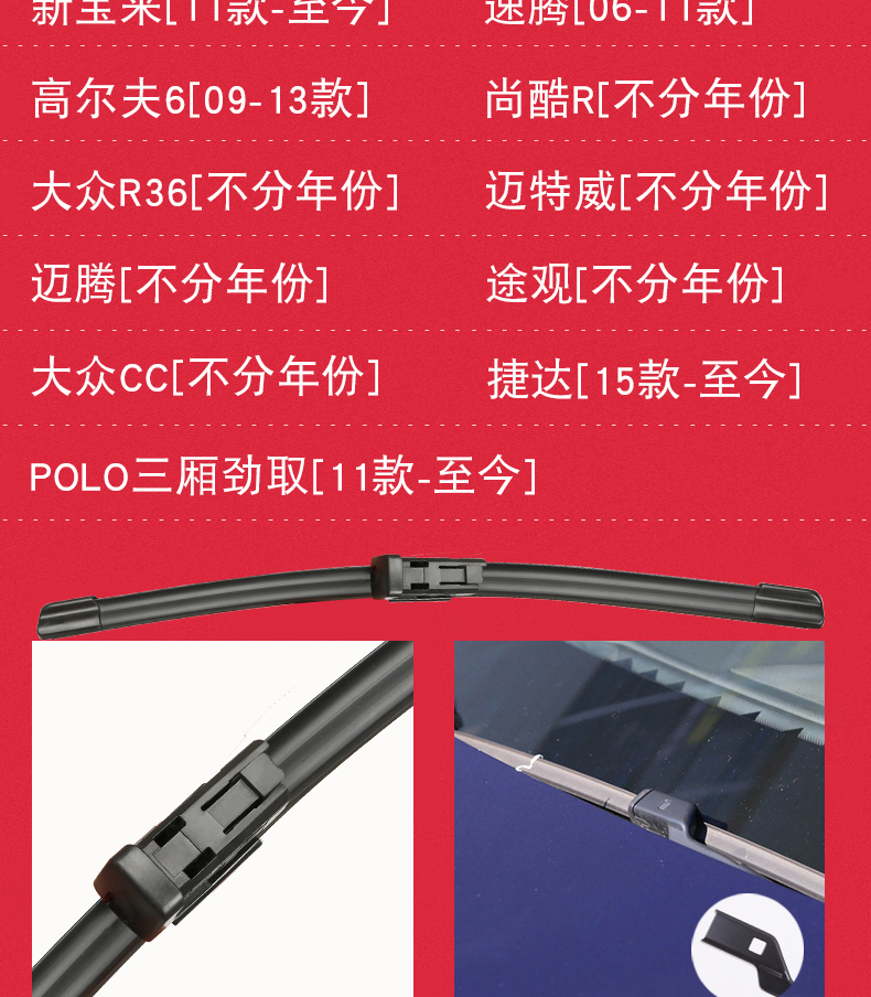 大众全系列雨刮器,厂家直销,天然橡胶,高弹钢片,安装便捷,持久耐用,使用寿命长,还你清晰视野,为你保驾护航,老司机的正确之选【赠运费险】