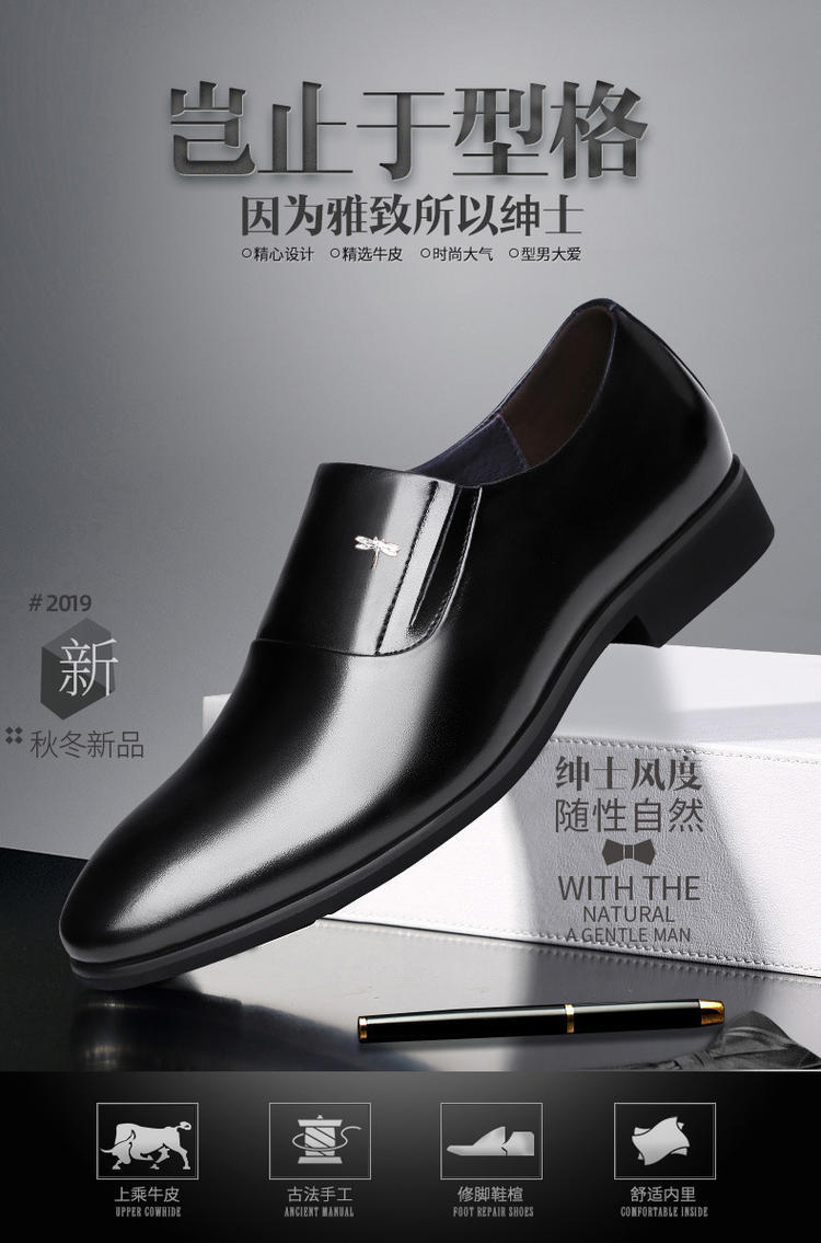 英伦黑色潮鞋子休闲商务正装皮鞋男士尖头