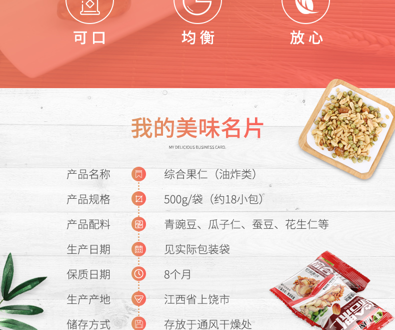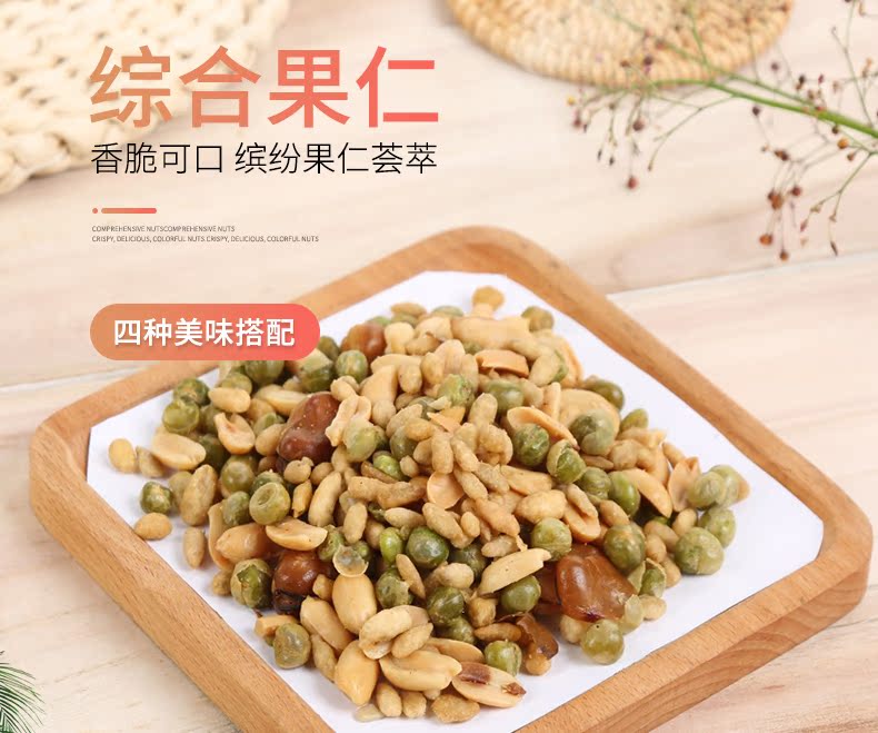 独立小包装炒货,500g约18小包,综合果仁香脆可口,缤纷果仁荟萃,优选品质原料,青豌豆,瓜子仁,蚕豆,花生仁四种美味搭配,健康美味只为你【破损包退】