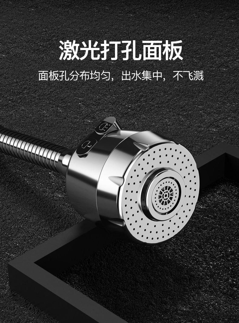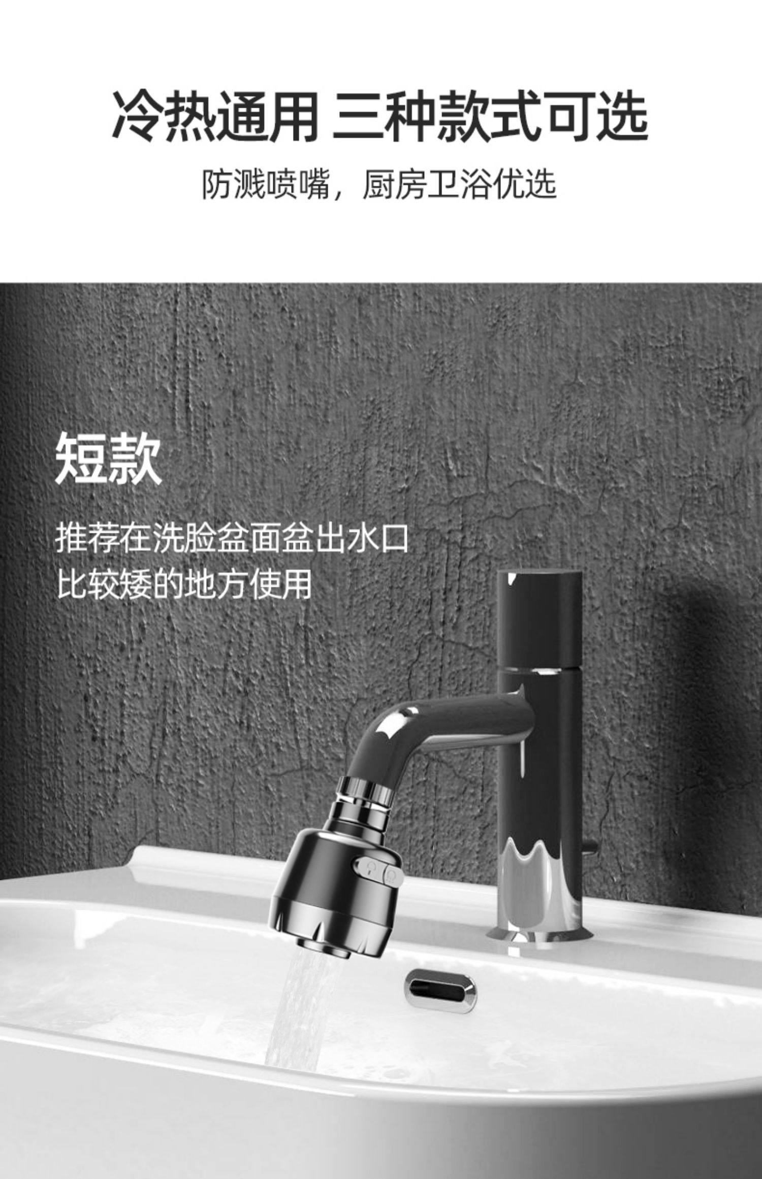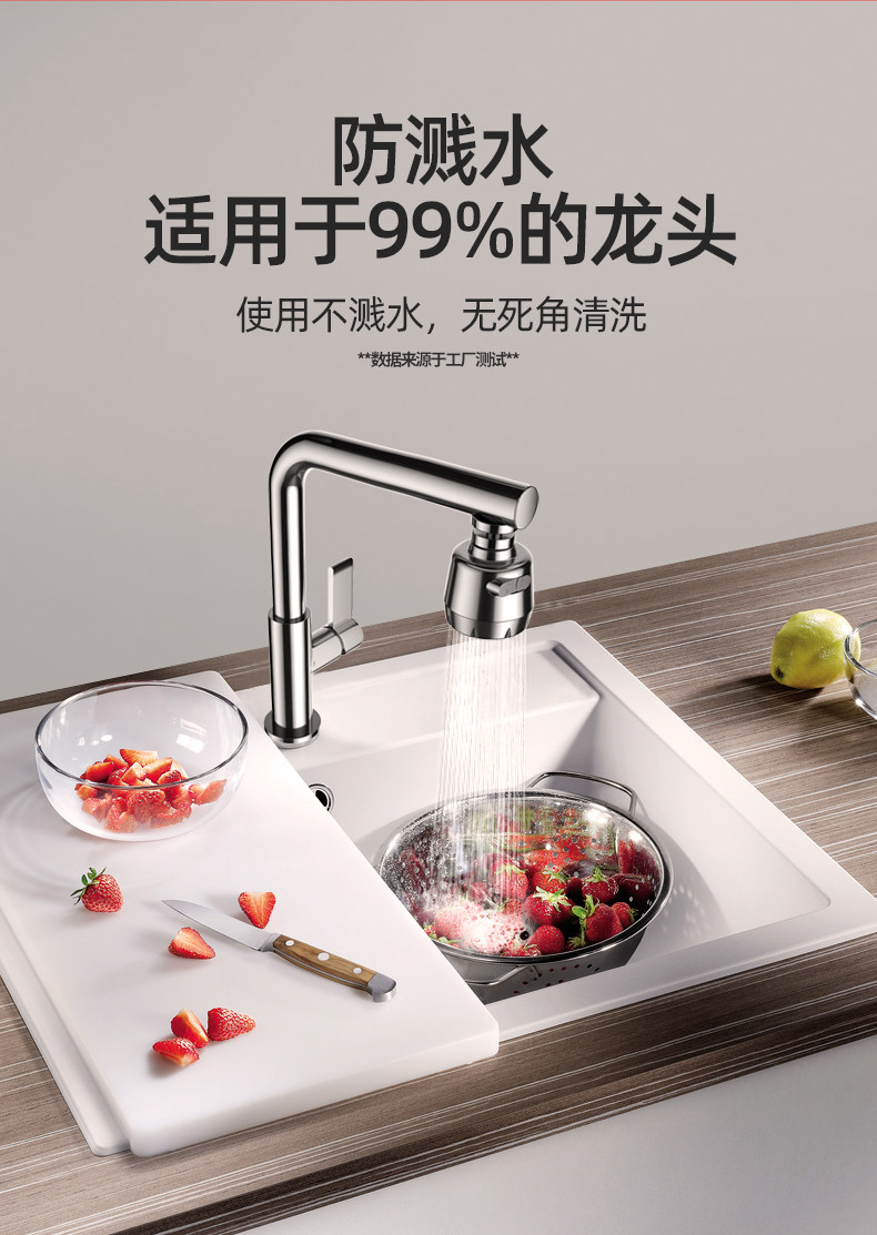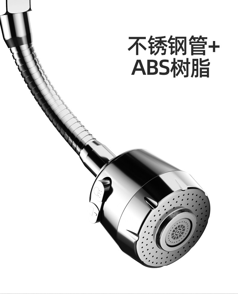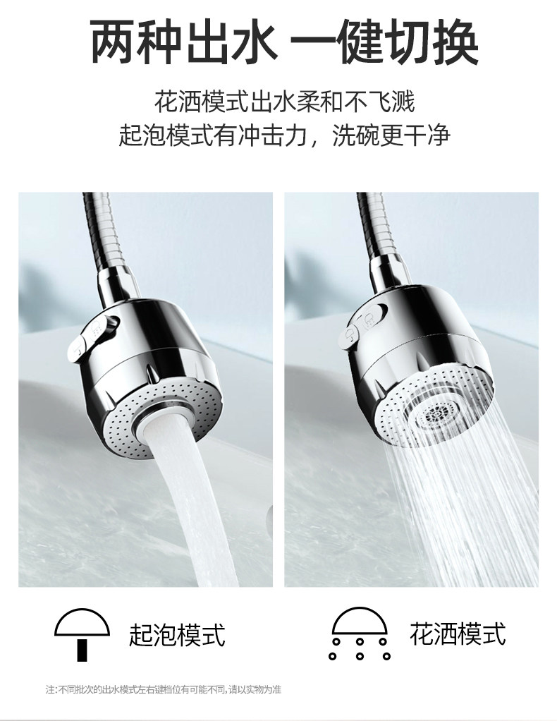 【送万用接口!】采用ABS环保原料,使用不溅水,360度任意旋转,清洗无死角,两种出水模式,随意切换,适用范围广泛,厨房、洗脸盆等都可适用,居家必备!
