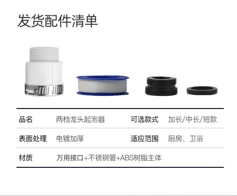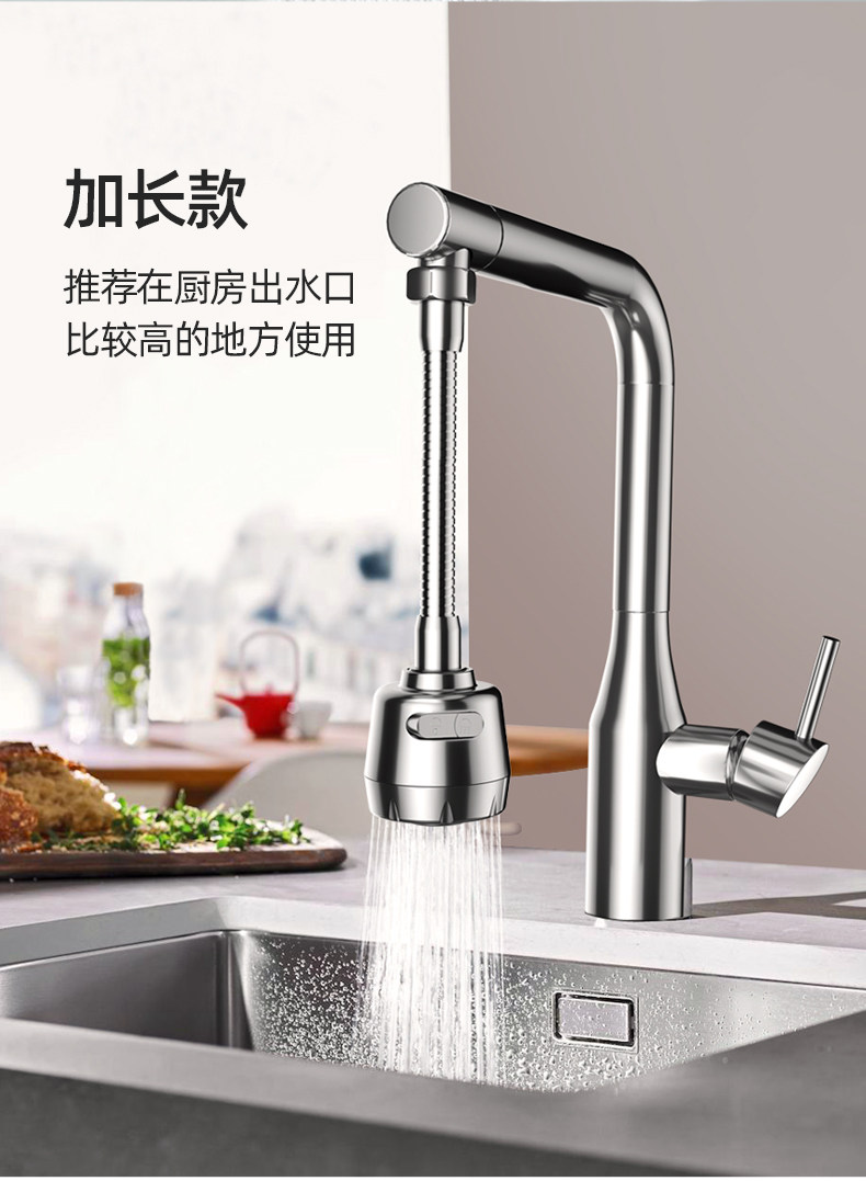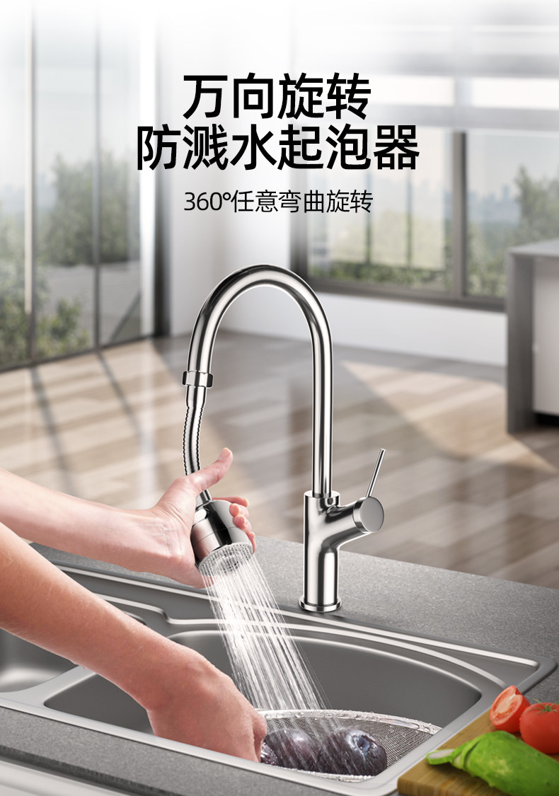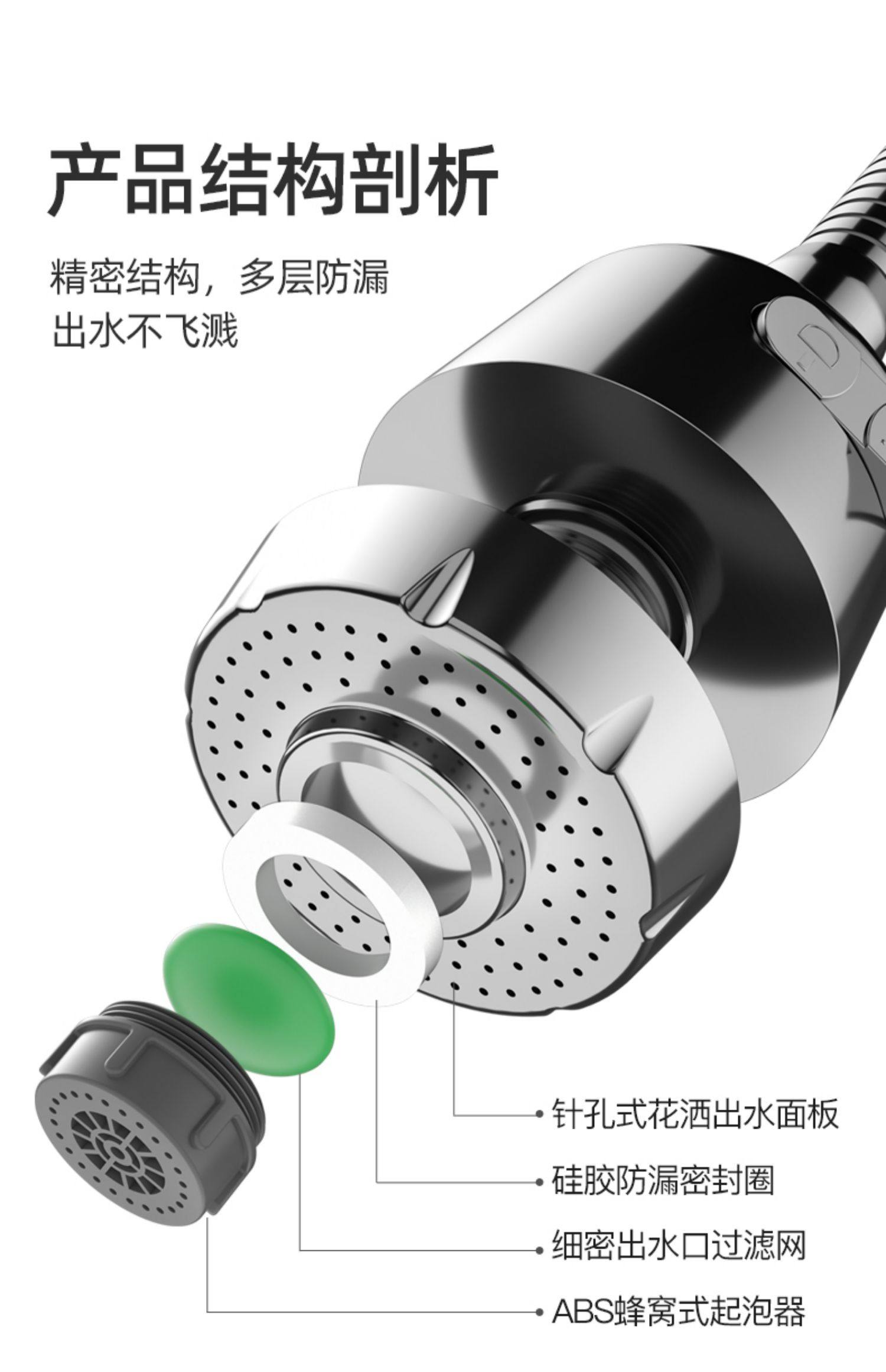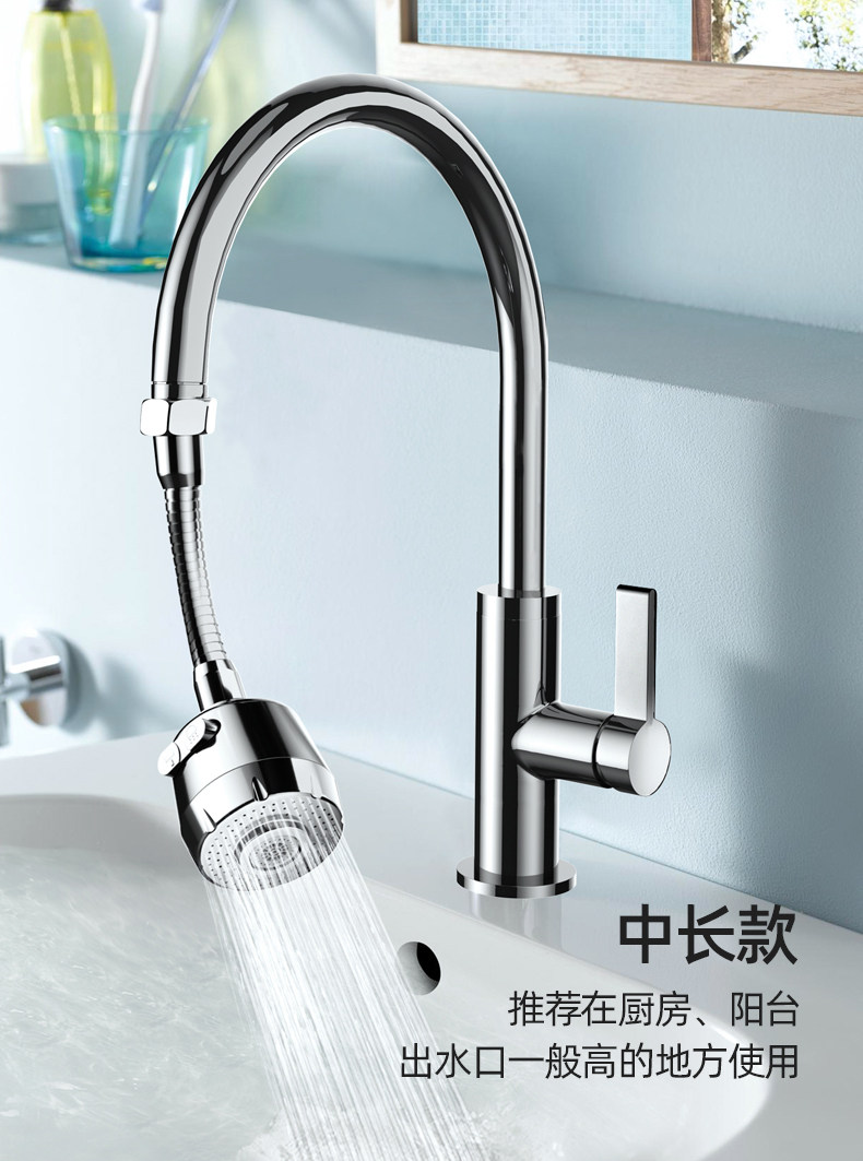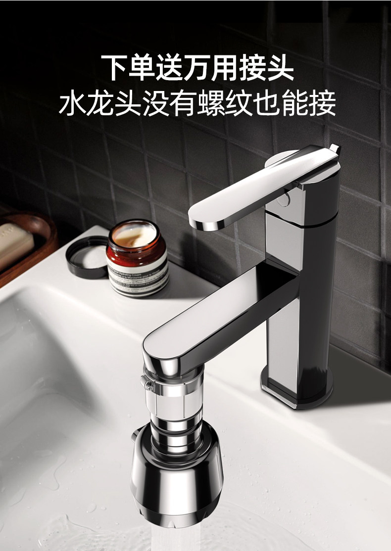 【送万用接口!】采用ABS环保原料,使用不溅水,360度任意旋转,清洗无死角,两种出水模式,随意切换,适用范围广泛,厨房、洗脸盆等都可适用,居家必备!