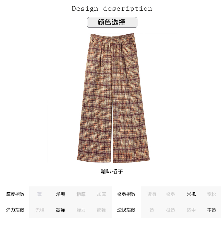 优质毛呢面料,质地柔软舒适,不起球,不褪色!垂感高腰,拉长腿部线条比例,打造高挑身材,穿出大长腿!
