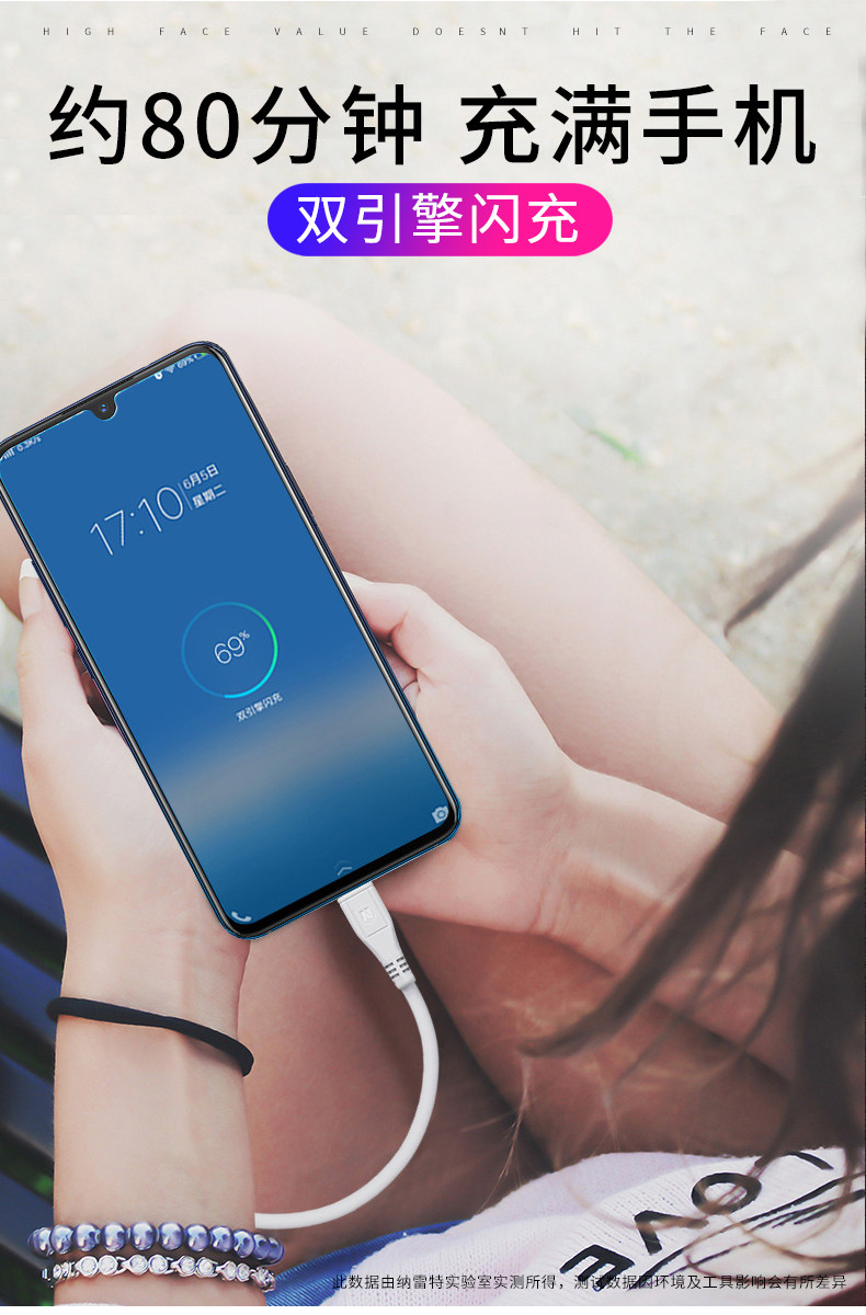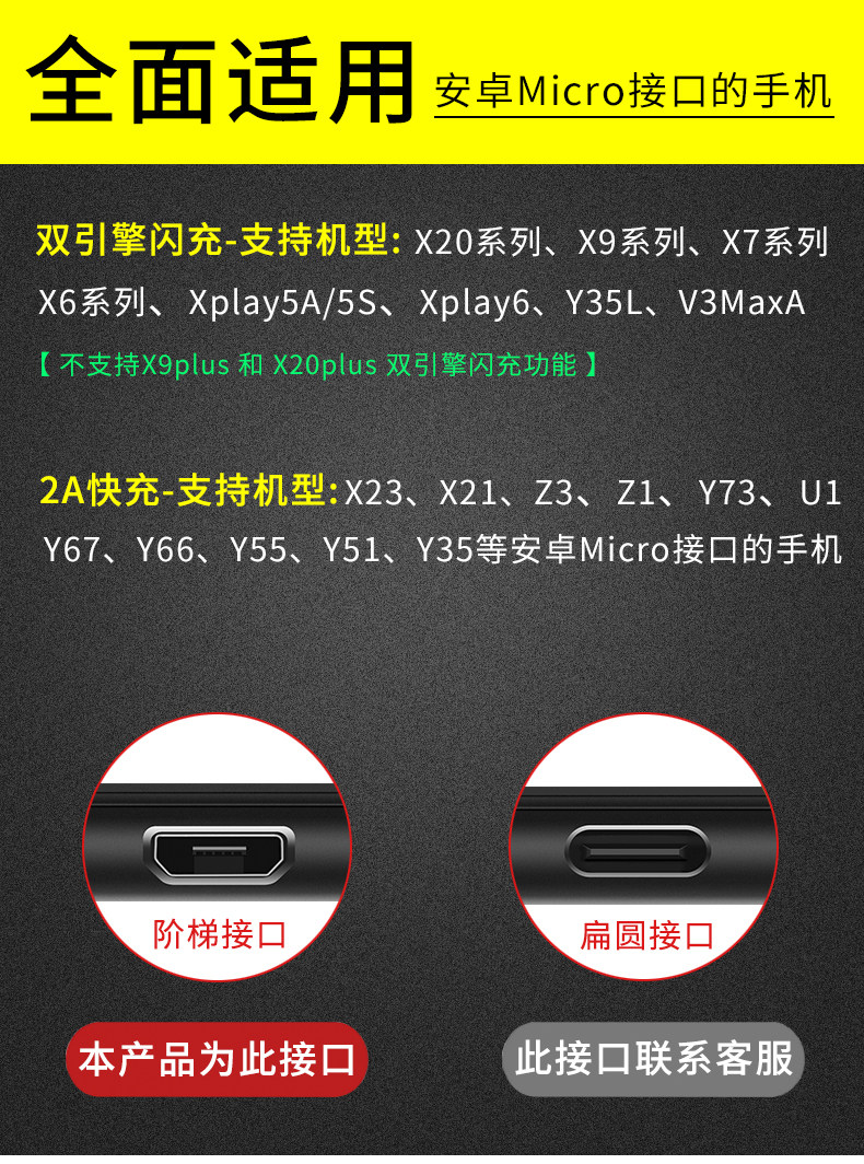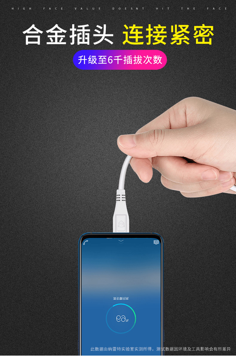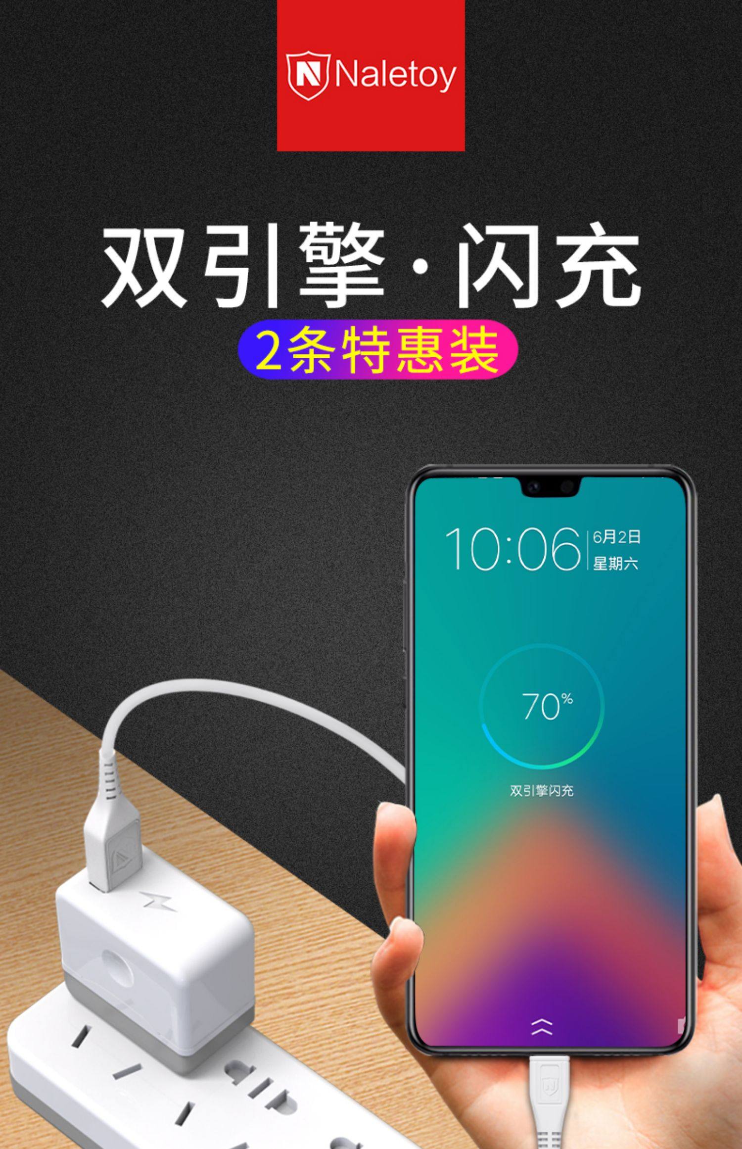 双引擎极速闪充,安卓专用闪充数据线,全面兼容,安全快充,安全保护,80分钟充满手机,升级铝合金接头,线身抗拉扯更耐用,稳定传输,边充边玩不发烫。
