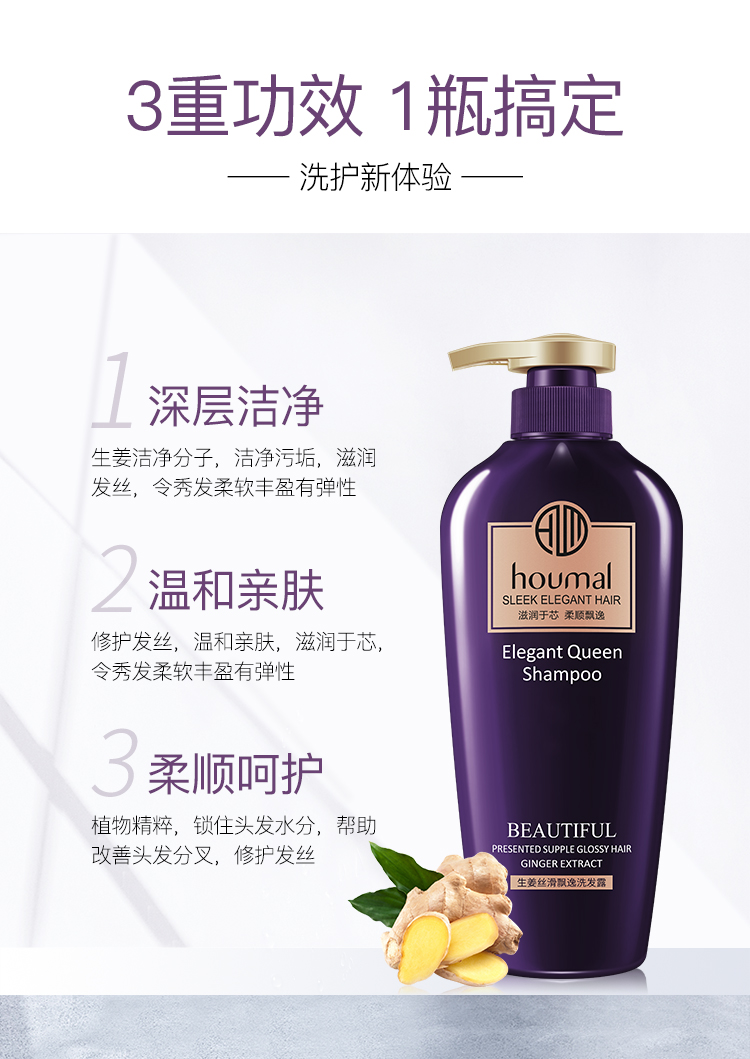 【全国包邮!拍一件实发三件哦】韩国原料,蕴含生姜,人参精华,温和滋润,有效修复烫染后的脆弱头发,柔软顺滑,去屑止痒,强健发丝,让发丝重现光泽亮丽!持久留香,让你的头发一顺到底~【增运费险】