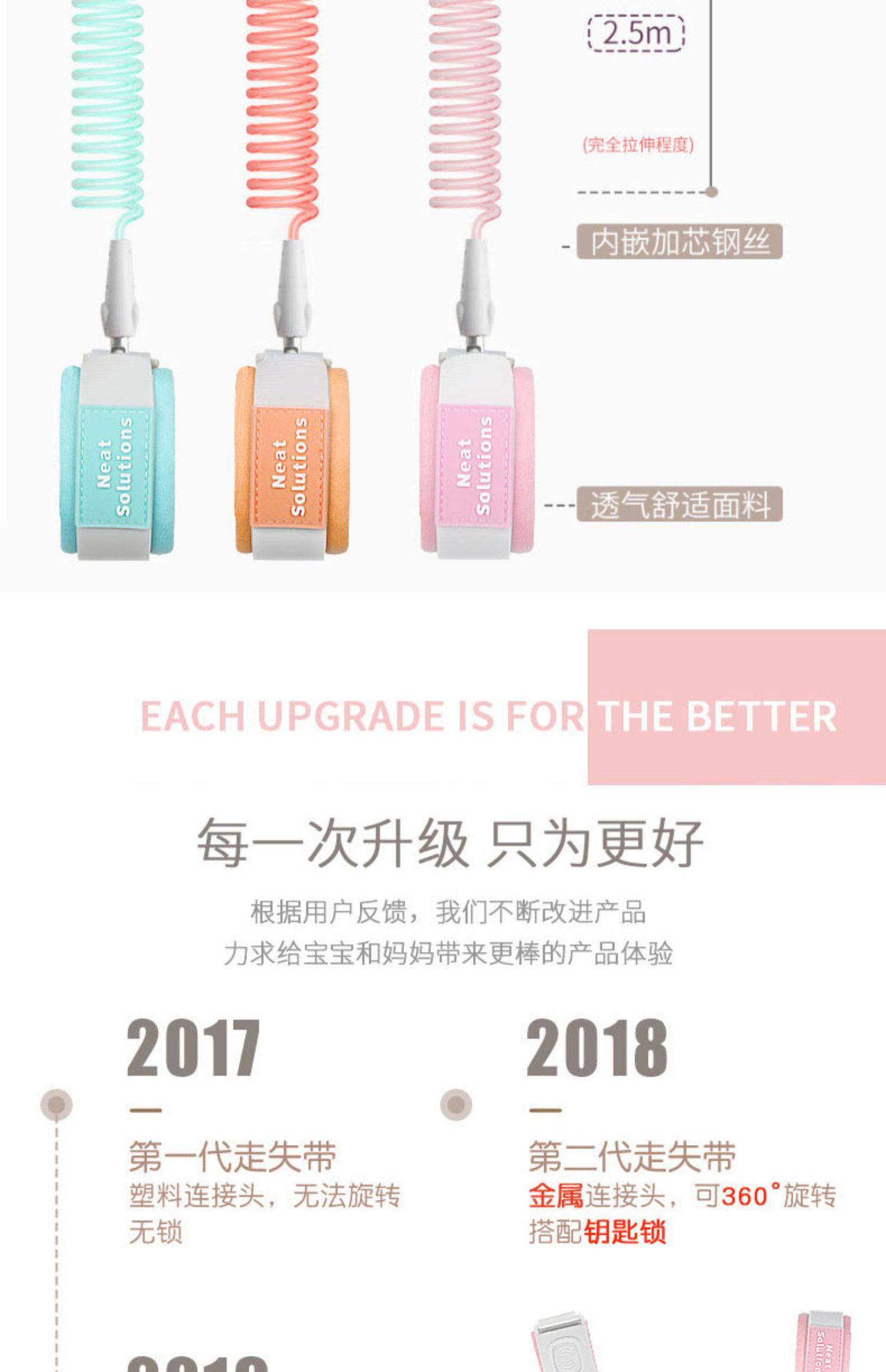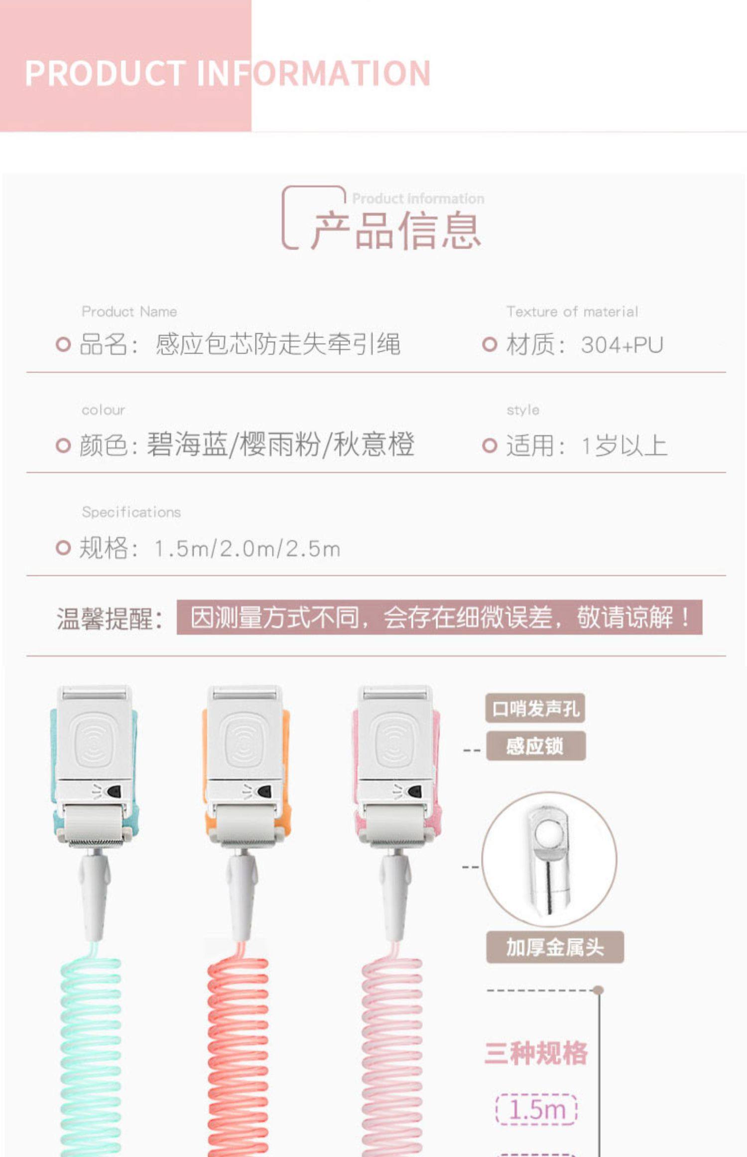 【送限量600个纯棉防丢绳收纳袋一个】第三代走失带,全新感应锁设计,增加口哨警示,让安全升级,包芯绳索,内置钢丝,舒适腕带,拉开自动弹回,出去游玩必备噢,防走失,少意外!带娃更轻松~