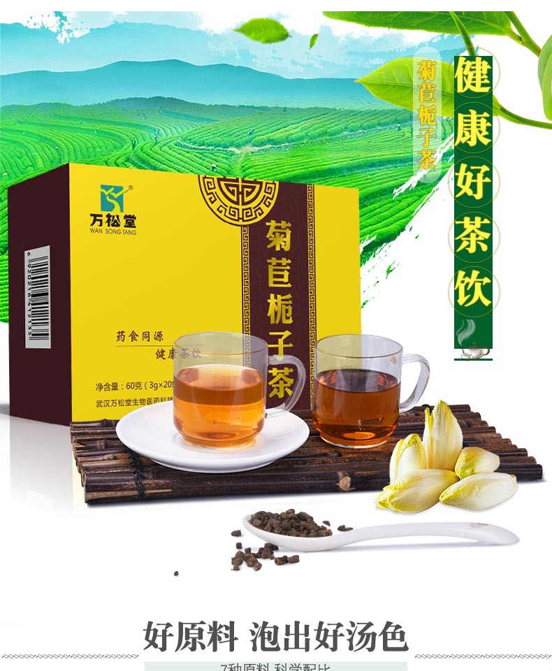 买2发3,菊苣栀子茶葛根双茶,绛酸高菊苣淡竹尿降排百合桑叶正品养生茶,飘雪浓郁,缺少运动、经常熬夜、不节制、爱喝酒、吃大鱼大肉都需要喝这个茶!