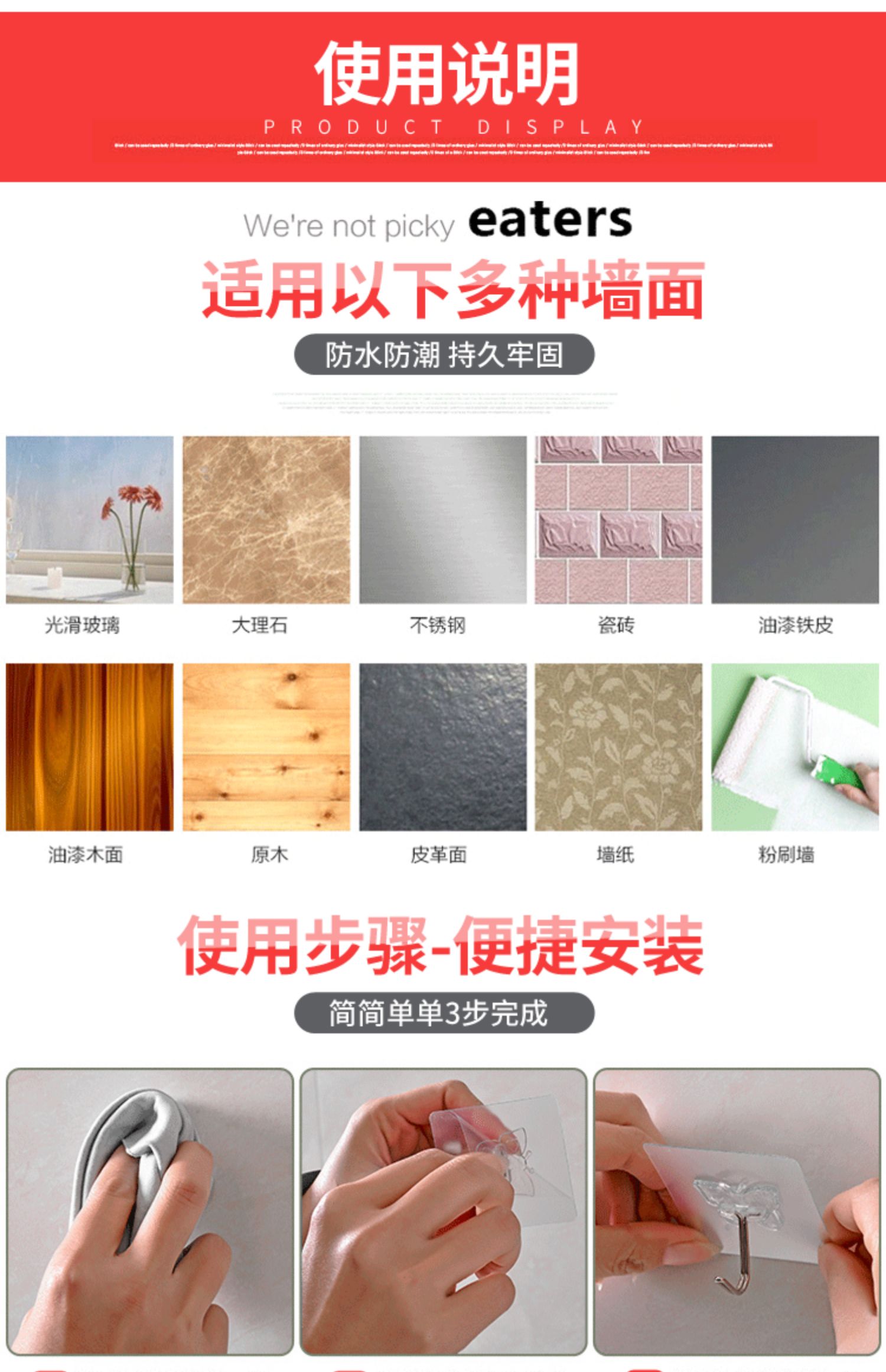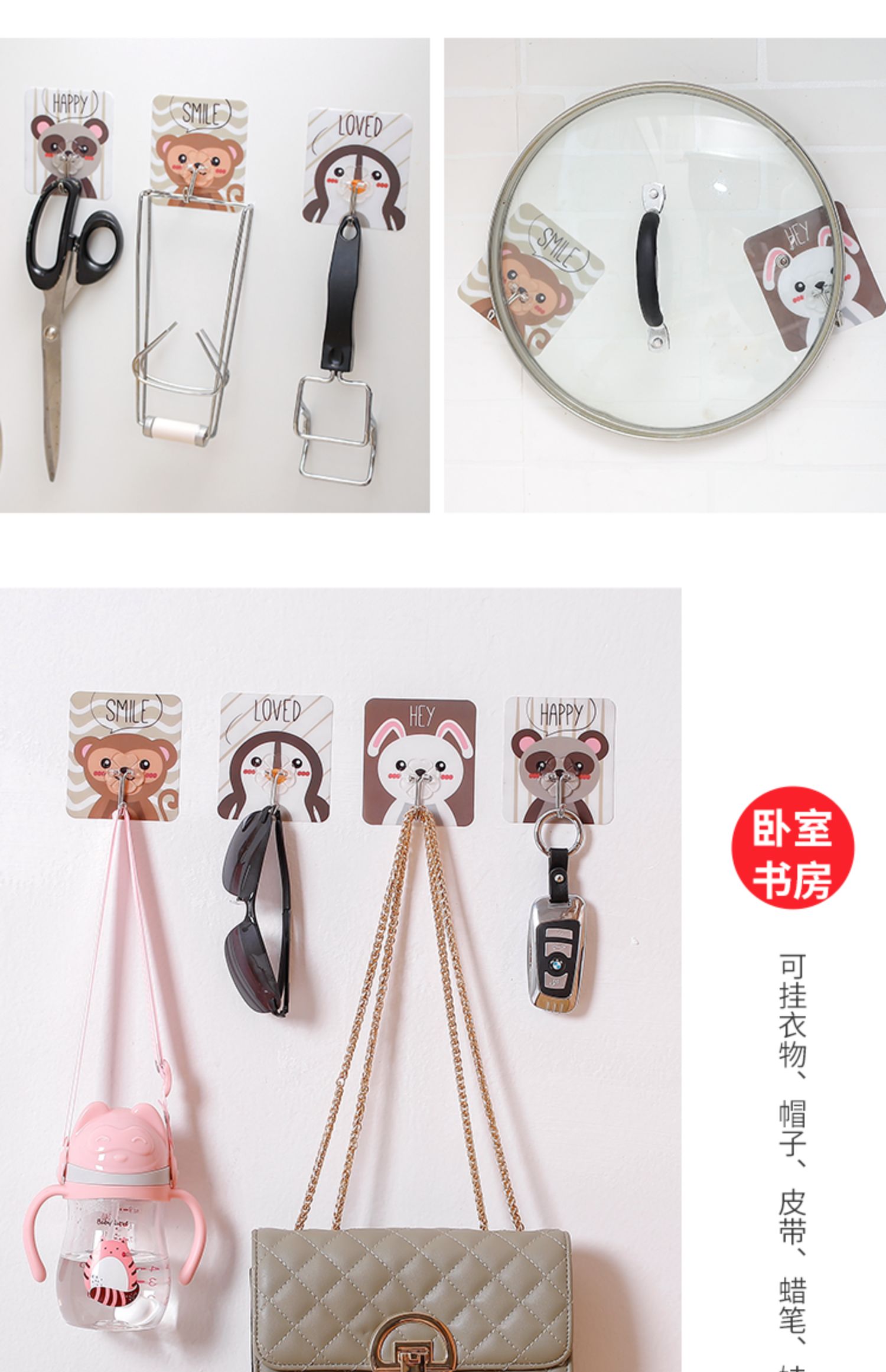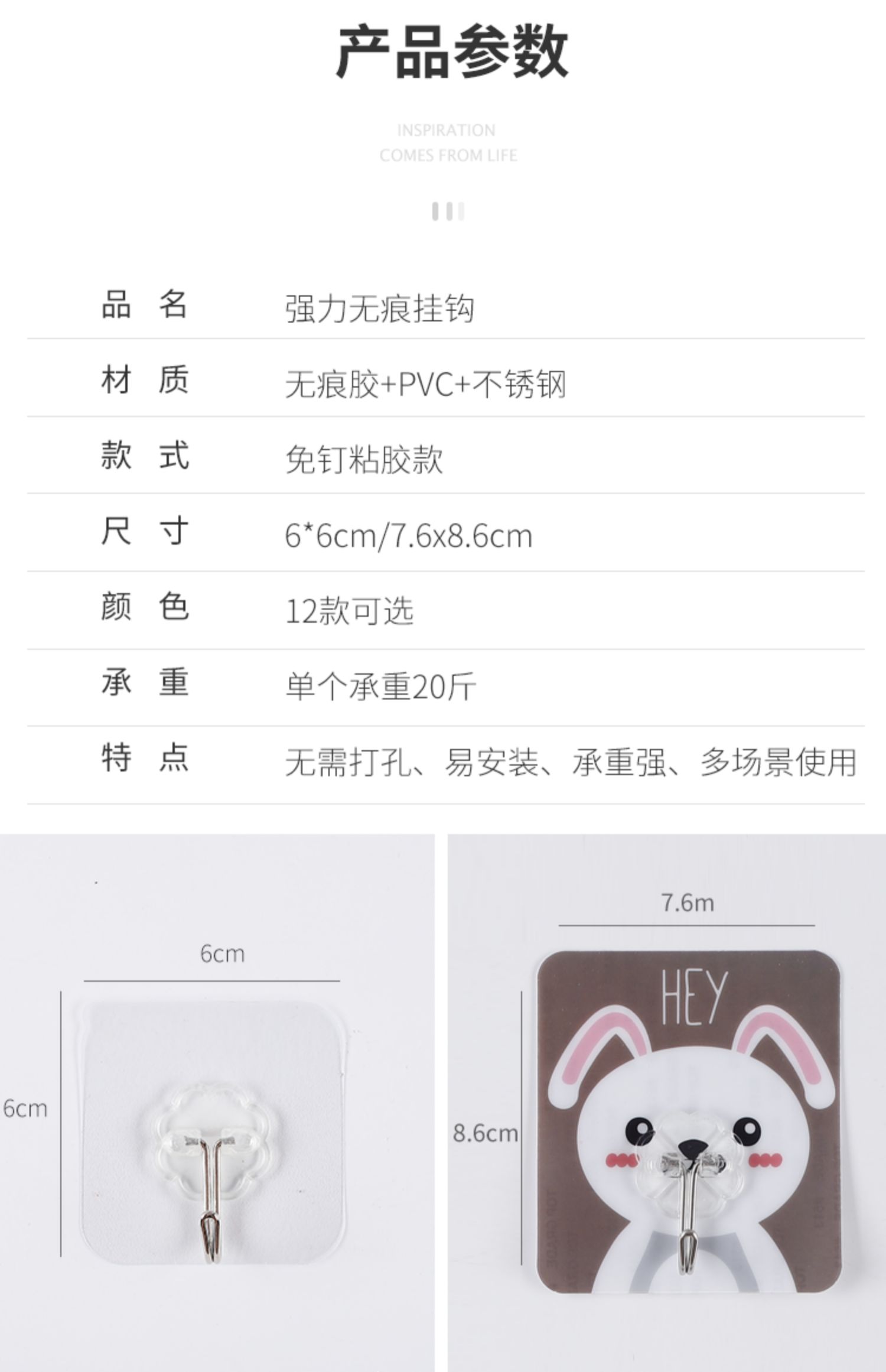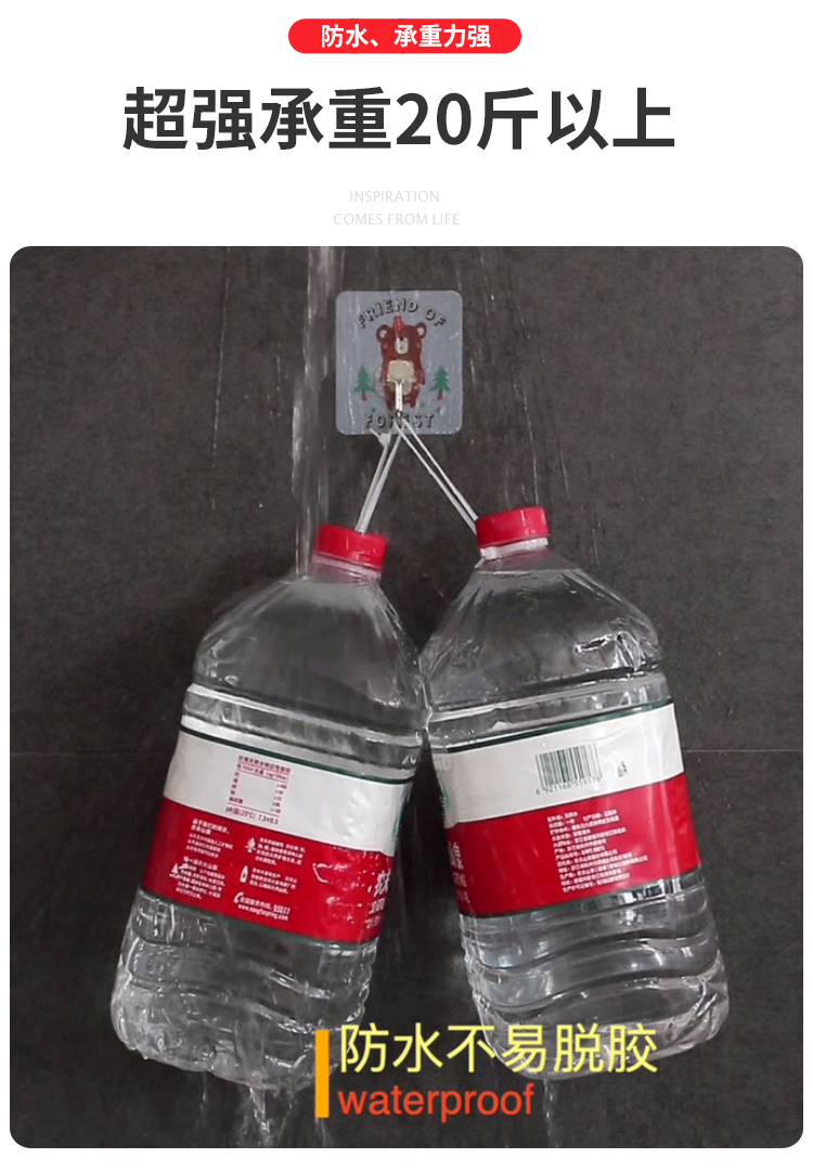 【天天优选5个装】无痕免打孔,防水防潮,安装方便,大用途,免钉,不伤墙面,超强承重,防水防油不脱落,厨房/卫生间/卧室都适用,承包你家全部的钩钩,家居必备!!!