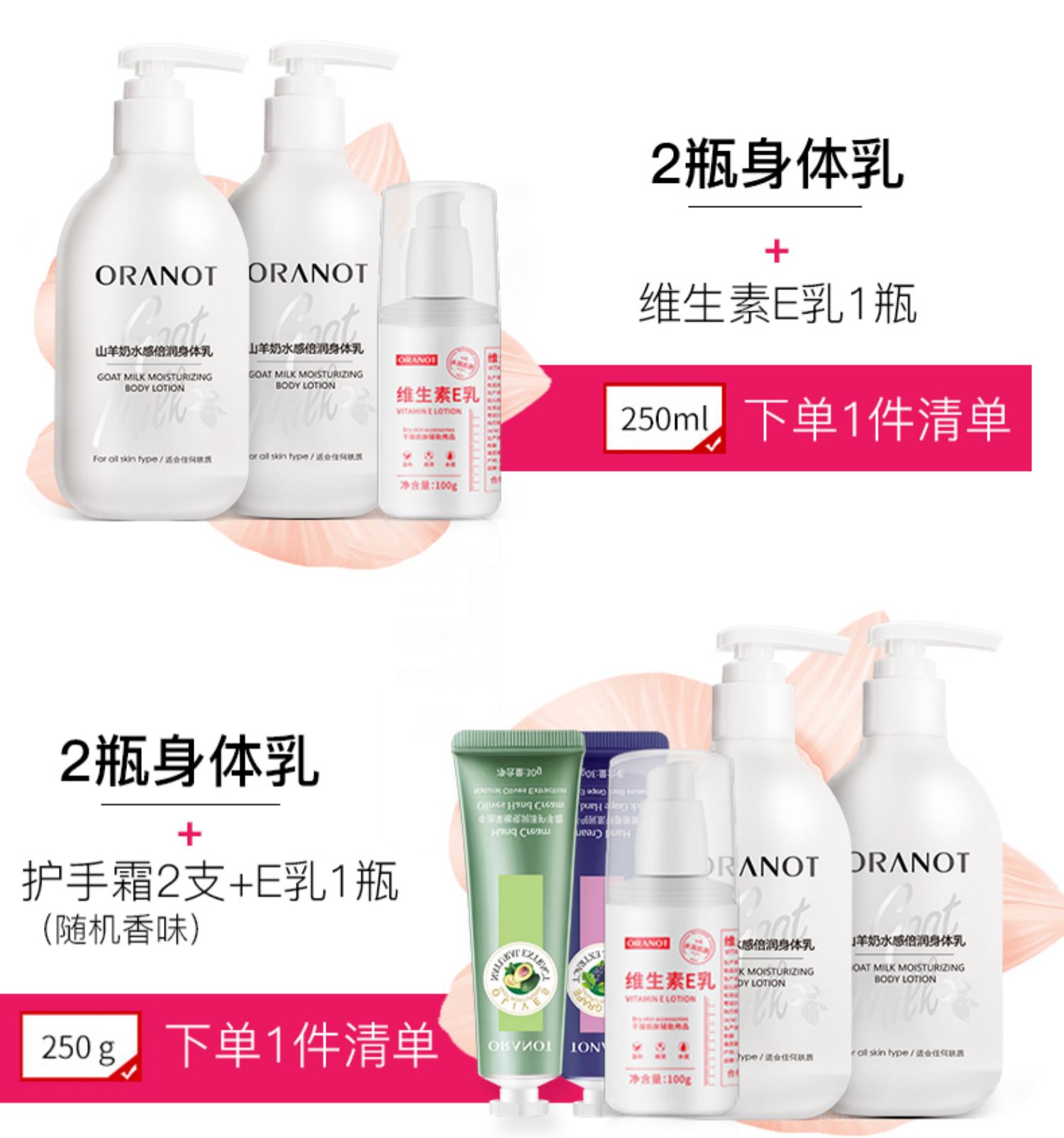 拍1发3~山羊奶身体乳2瓶+维E乳1瓶!半亩花田同厂出品!小姐姐肌肤干燥粗糙怎么行!赶紧山羊奶身体乳抹起来~淡淡奶香味,水乳般清爽质地,抹上好吸收,不油腻!保湿滋润,还能去鸡皮!养出滑嫩肌肤!