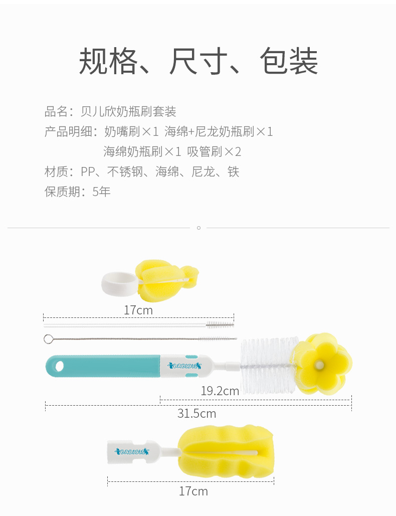 【贝儿欣】奶瓶奶嘴清洁刷5件套