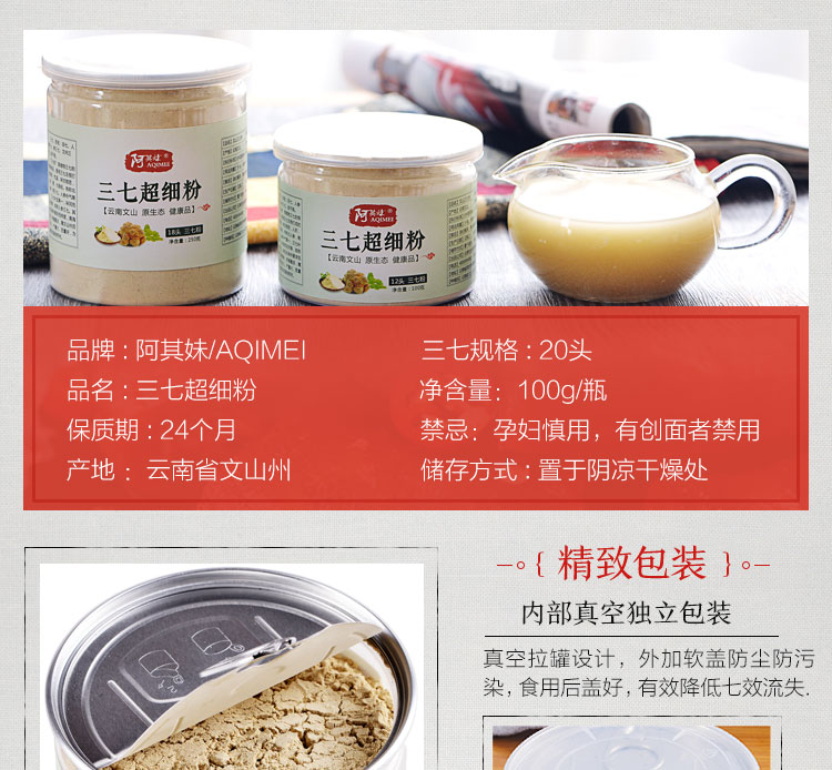 云南文山三七产地直销,GPM认证,原料纯正,超细粉破壁田七粉100g,蕴含丰富营养,美容美颜,提高机体免疫功能【赠运费险】