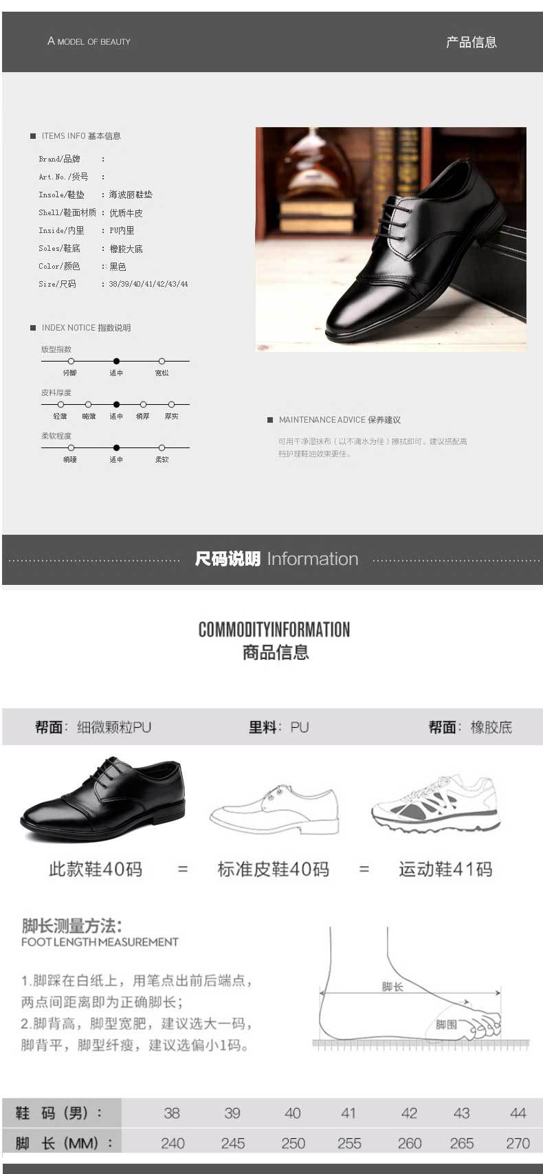 春秋季新款男士正装商务皮鞋