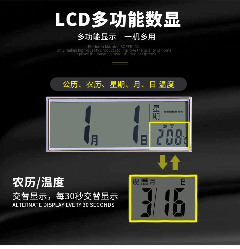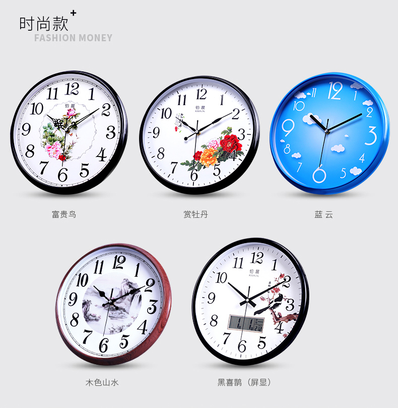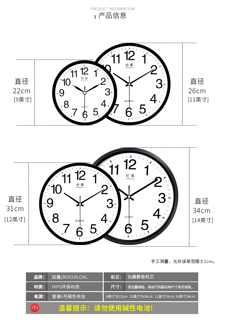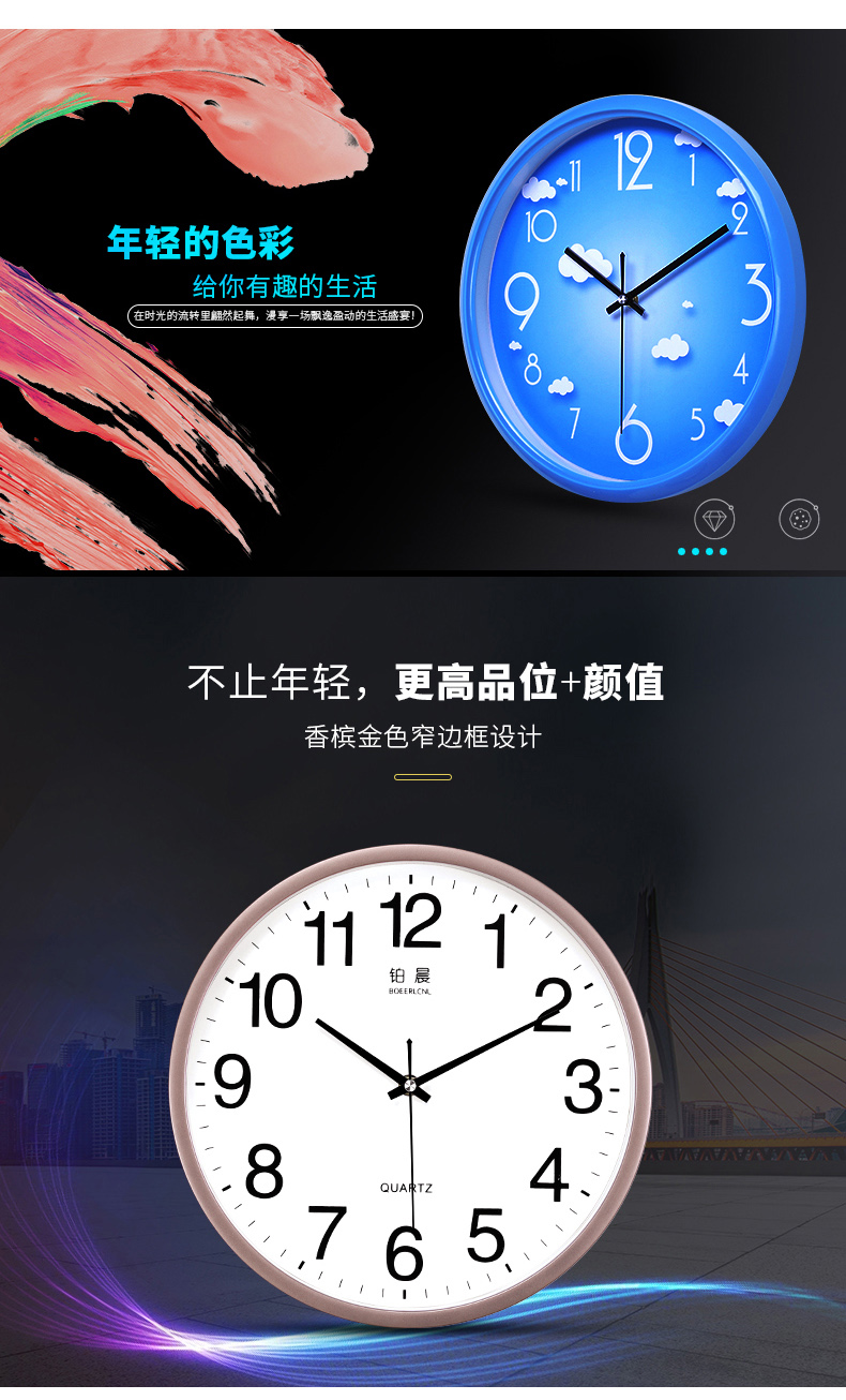 【天猫专卖店】BOEERLCNL/铂晨官方,静音挂钟,现代简约,客厅个性钟表,经典款式,液晶显示日历,静音机芯,pvc外壳,简约表盘,更加舒适,多色多款可选,品质保证【赠运费险】购物无忧