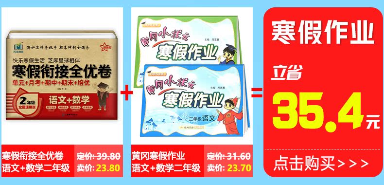【买就送笔或者本子2个】黄冈小状元寒假作业,二年级语文+数学,超值2本装,教学同步,优质纸张,知识点总结,全面解析,详细讲解,打好基础,让孩子赢在起跑线上!