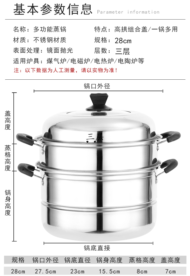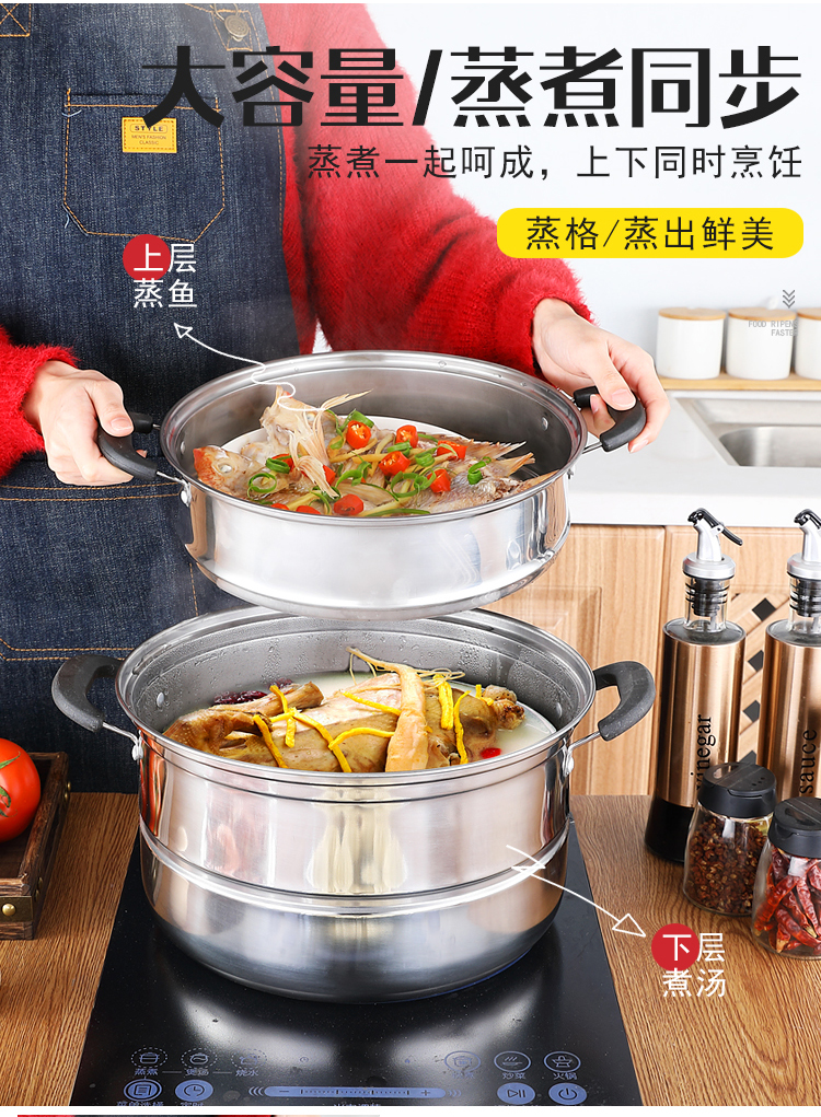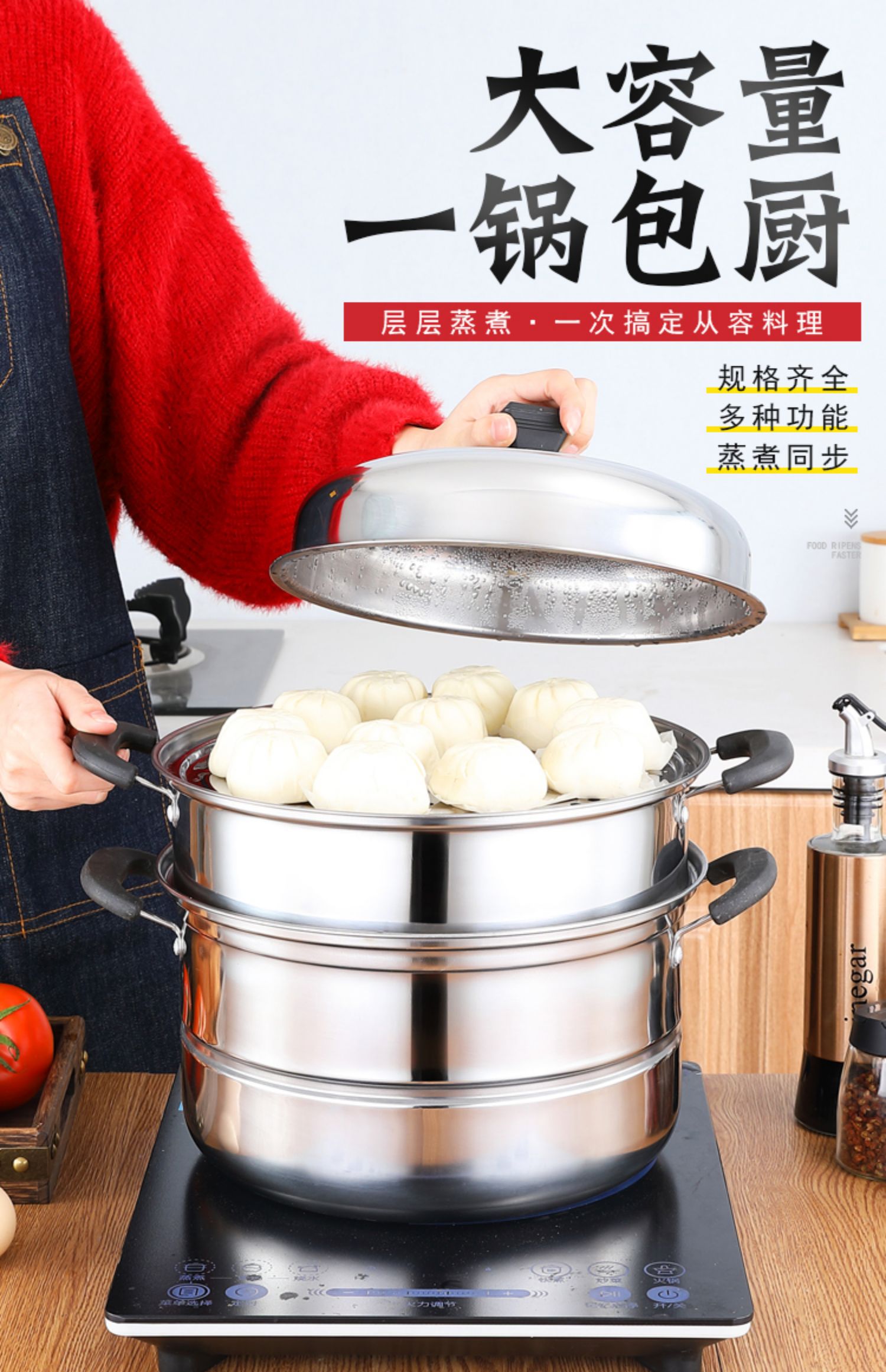 食品级材质,三层加厚,家用多层蒸笼锅,适合各种炉灶,一锅顶多用,美味不串味,保持原汁原味,在家轻松享受健康少油的清爽蒸食【赠运费险】
