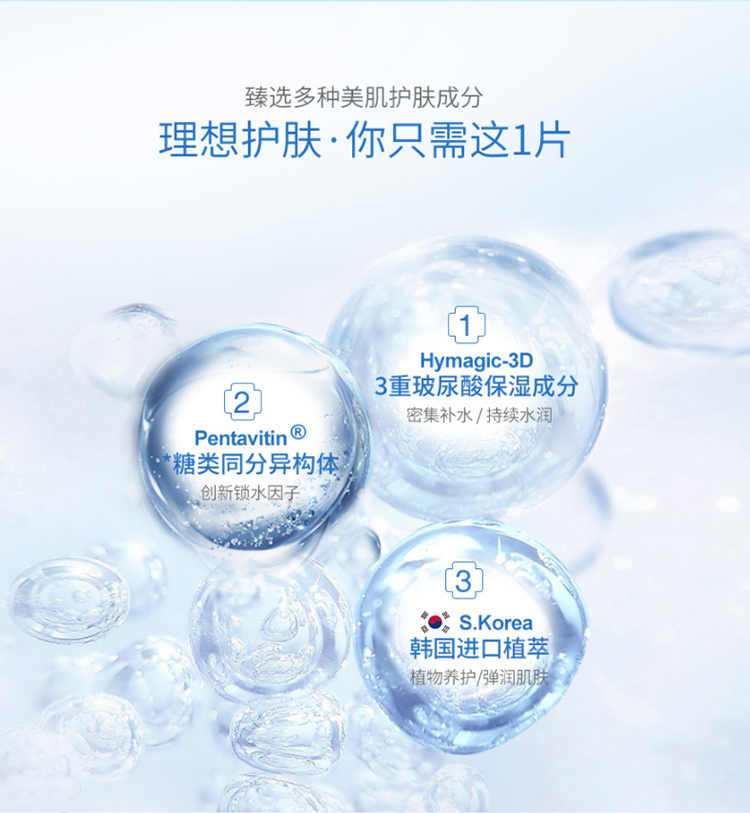 【拍1发二】装嫩神器,快补水,提水亮,水滋养,一片锁住玻尿酸精华,释放满脸水润嫩量~~