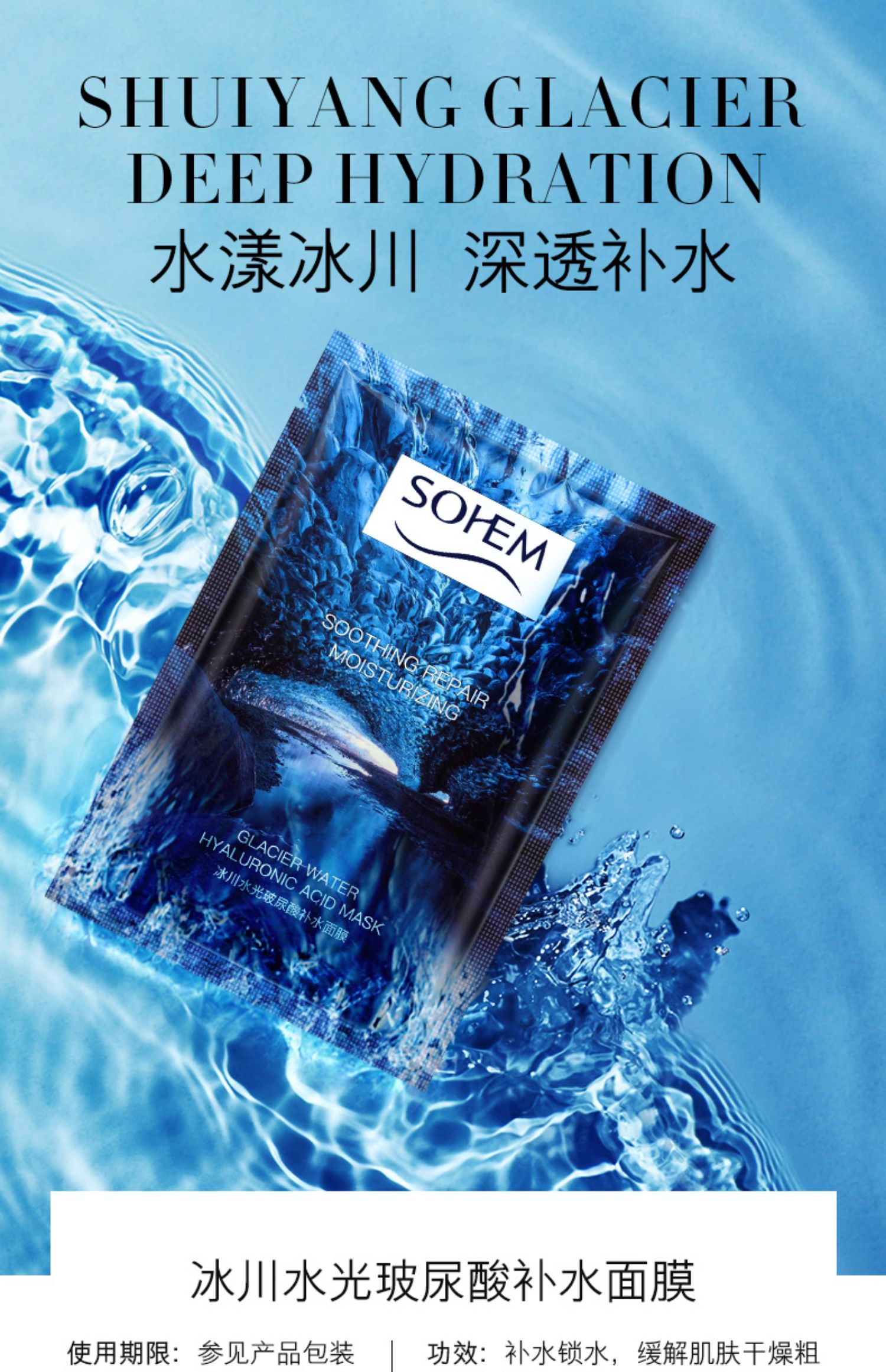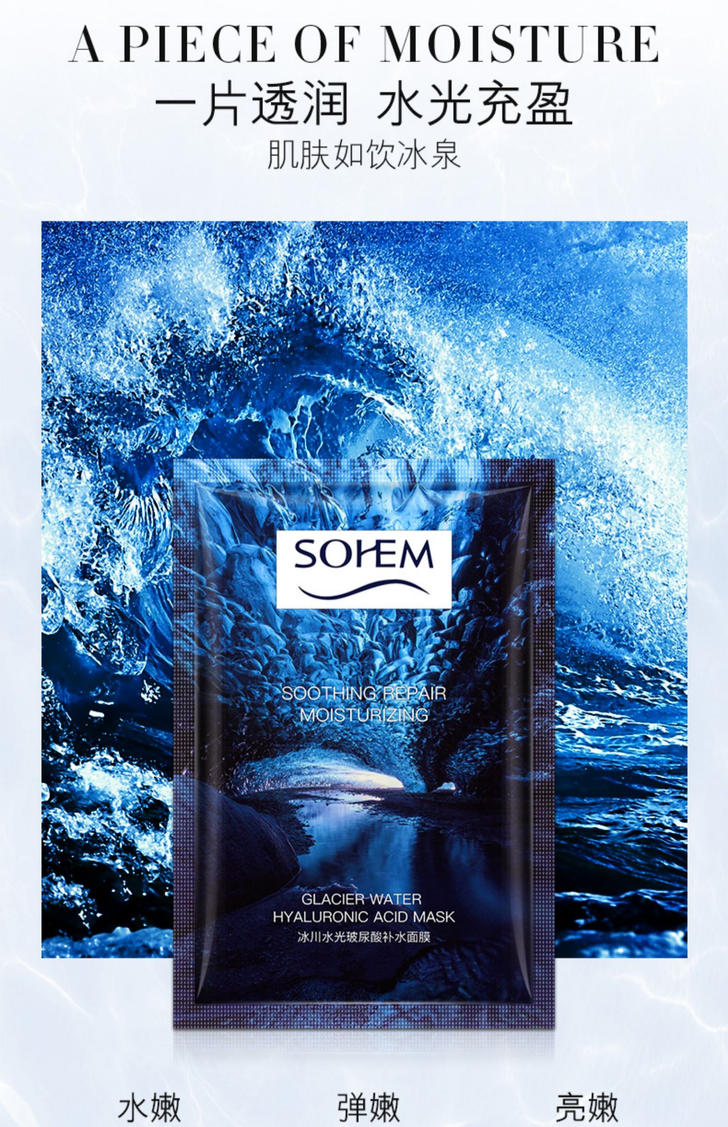 【专柜同款,拍3件共30片,第二三件0元】SOHEM冰川玻尿酸面膜补水保湿淡化痘印收缩毛孔紧致官方正品男女,玻尿酸密集补水,打造水润弹嫩肌,正品保证【赠运费险】