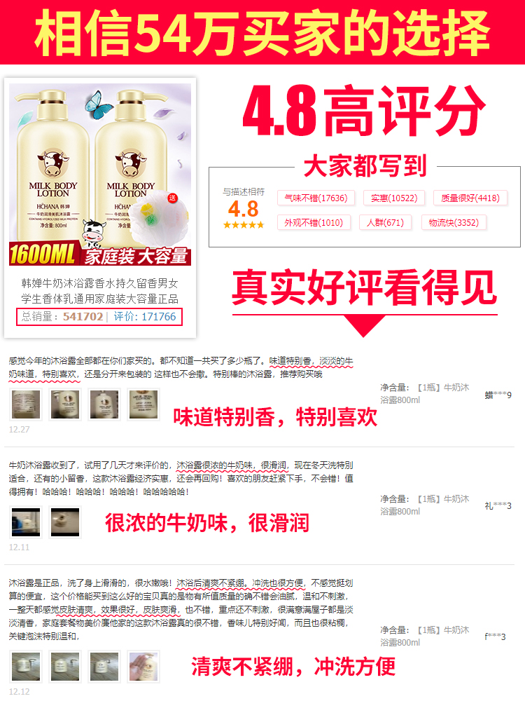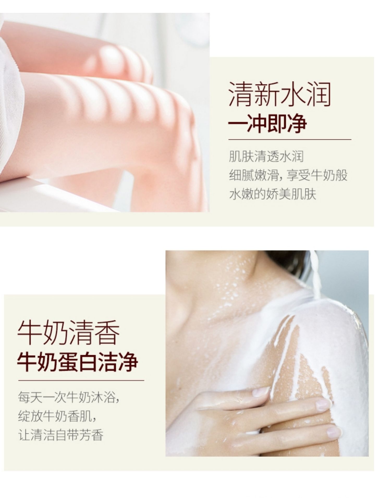 三瓶装2.4L沐浴露!香滑肌,洗出来!添加牛奶蛋白,清新奶香温和无刺激,泡沫细腻,润泽醒肤,水润保湿,柔滑芬芳,粉嫩美肌!留香呵护全家健康!