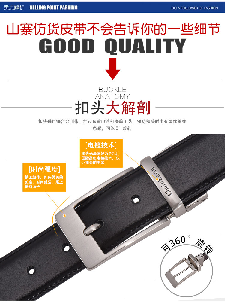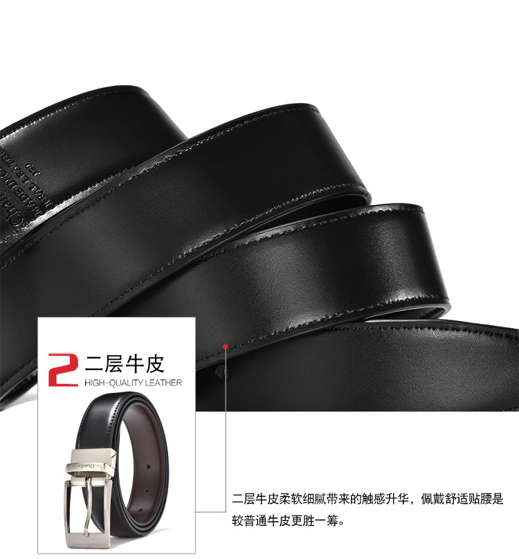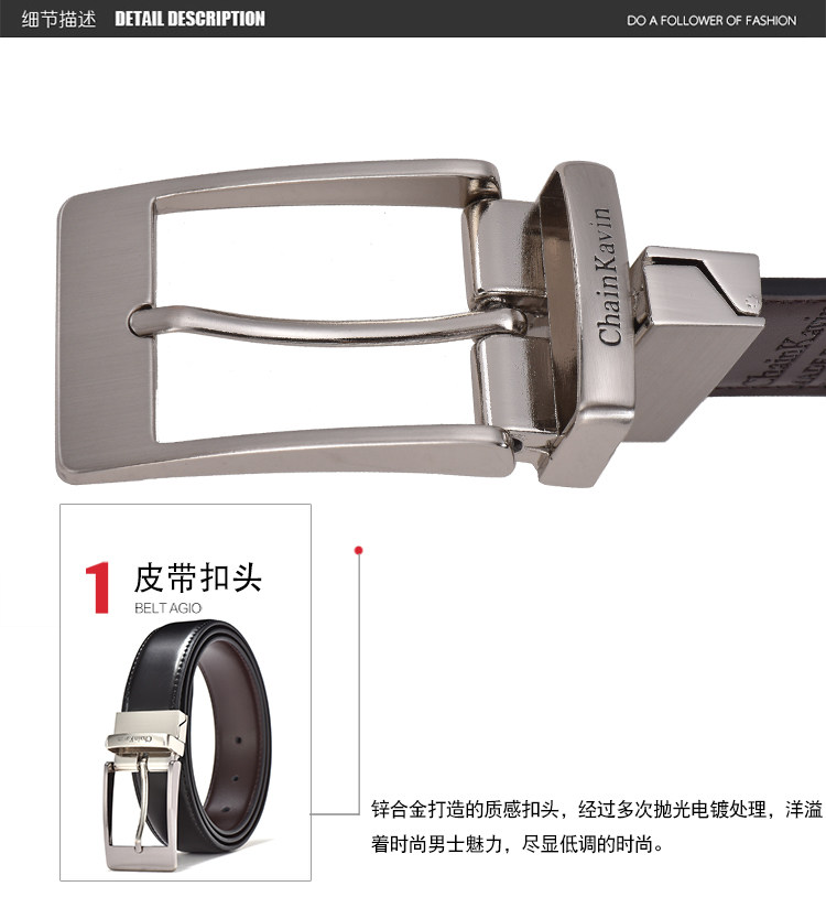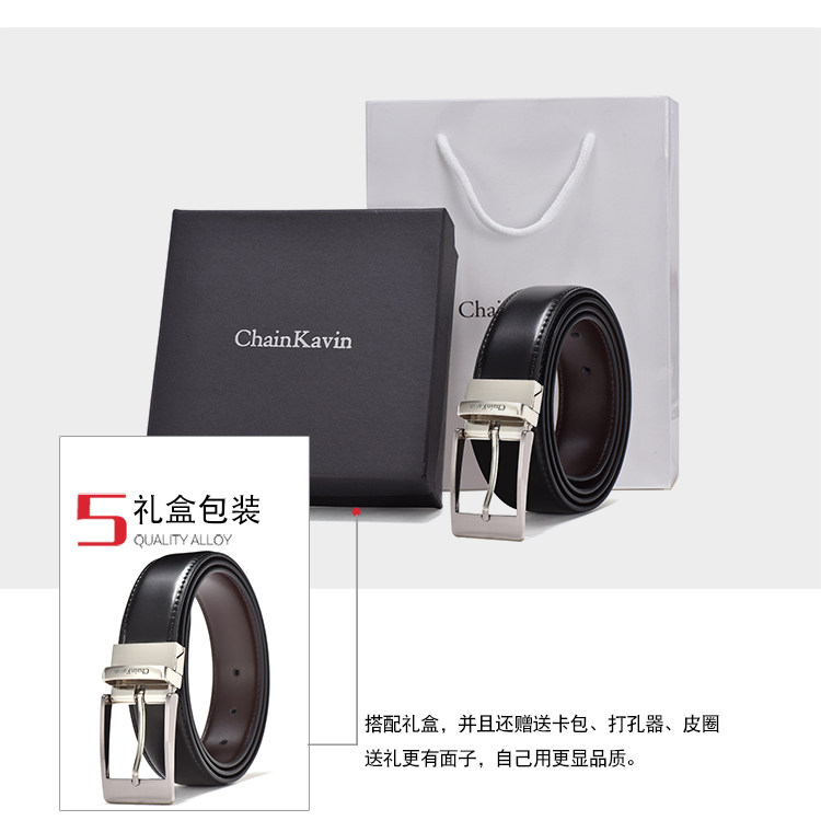 铝合金打造的质感扣头,经过多次抛光电镀处理,二层牛皮柔软细腻,细腻油变,精准扣眼,礼盒包装。【赠送运险费】