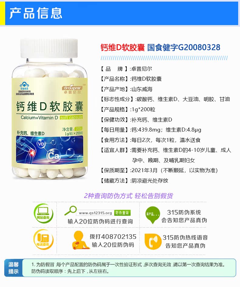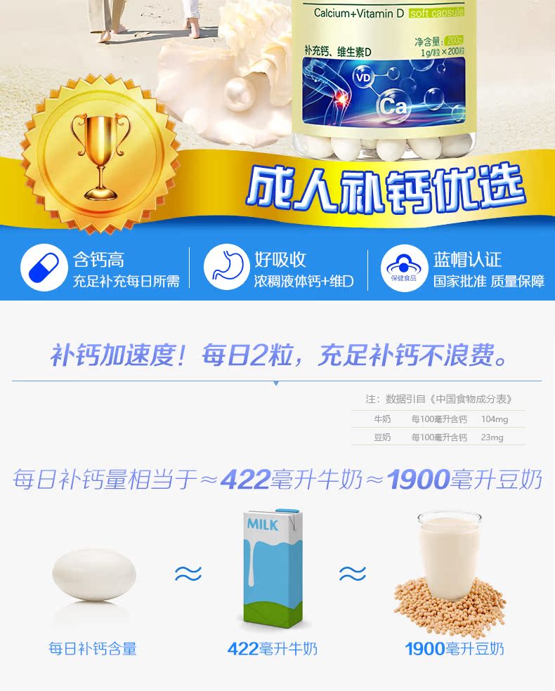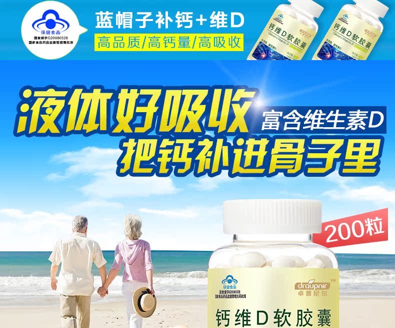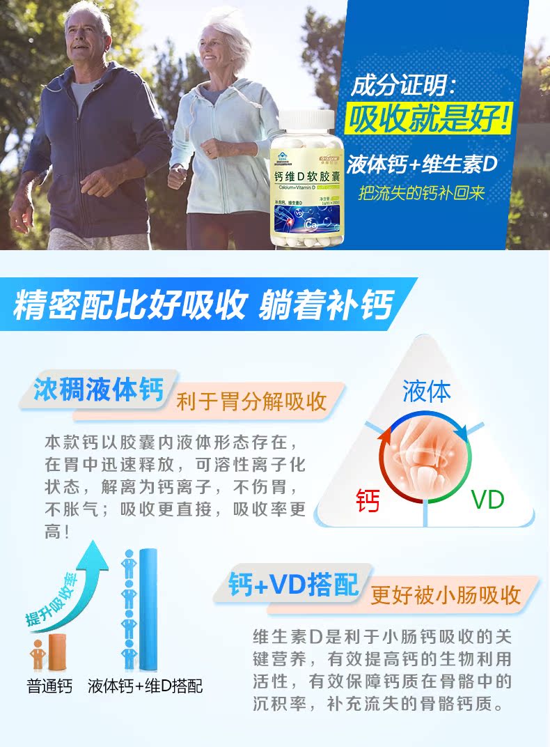 【买2送钙D+维C】1瓶200粒,液体钙配方好吸收!不只是补维生素D,还有补钙,双效合一,给骨质关节充分营养,增强身体免疫力,补充每日所需,身体有活力,年轻老年人都可以的补钙选择【蓝帽子认证】