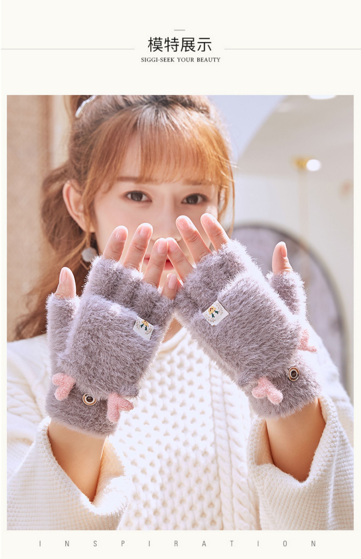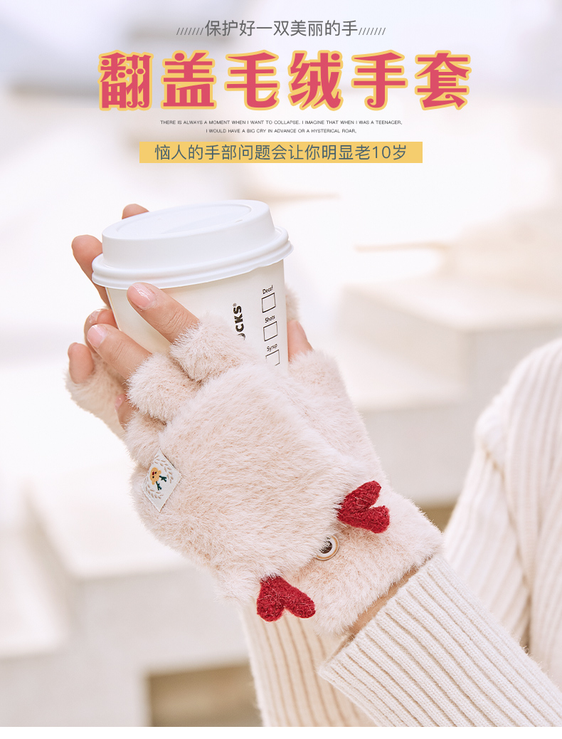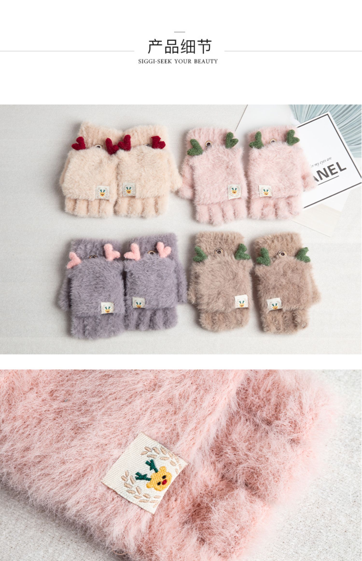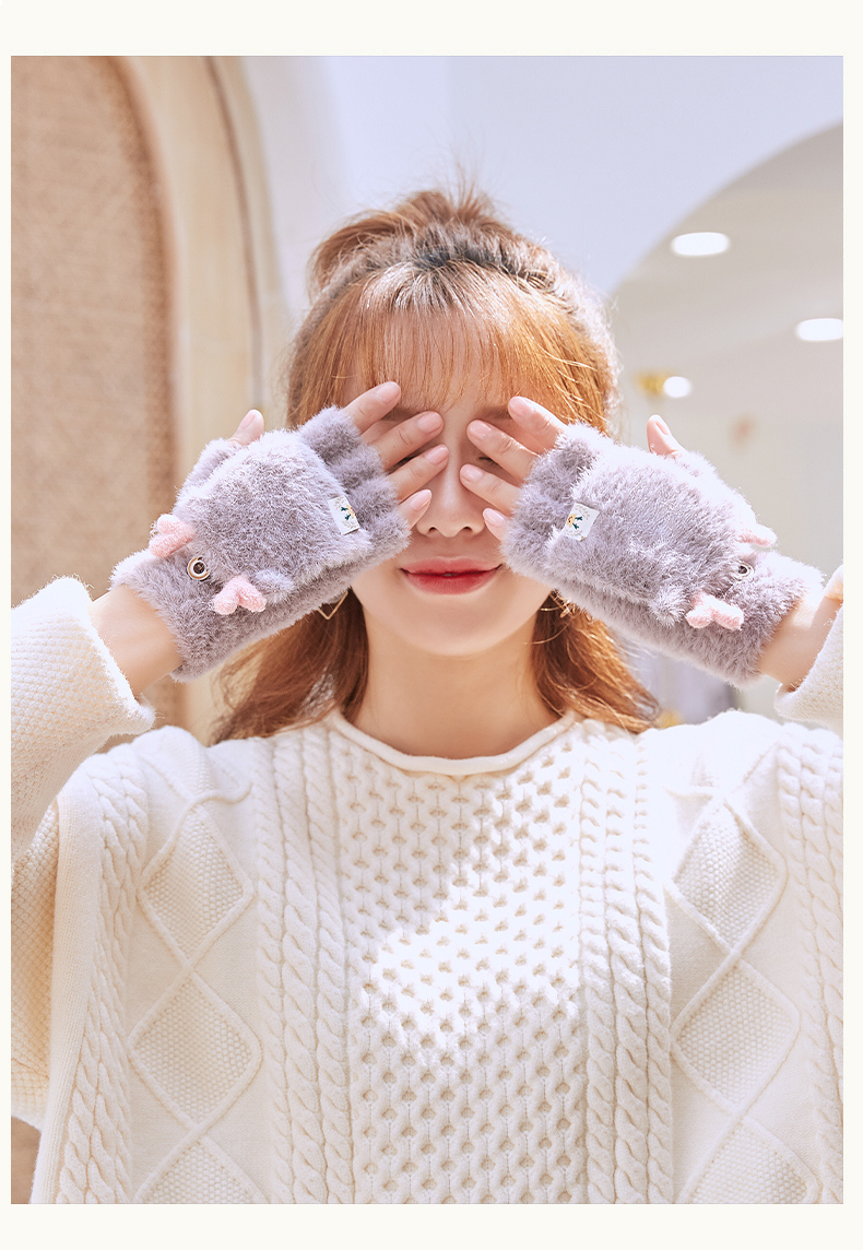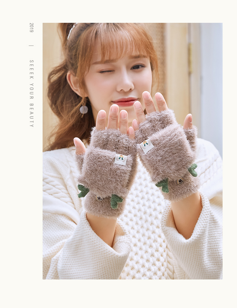 可爱鹿角装饰,手感柔软,亲肤透气,内里加绒,多色可选,半指写字不打滑,一双毛茸茸的手套温暖您整个冬天!