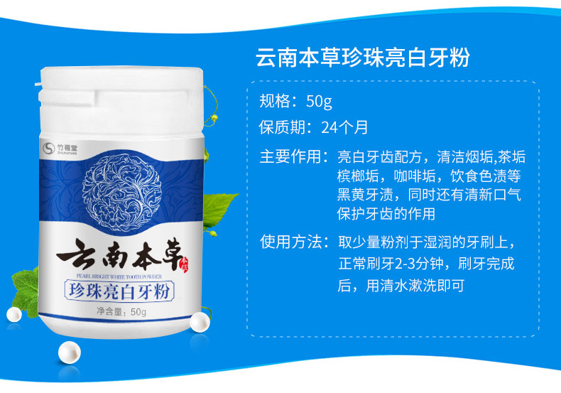云南本草珍珠亮白牙粉,去黄洗白洗牙速傚牙齿变白神器,去结石牙斑净,添加珍珠贝粉,去牙渍牙垢,美白牙齿【买2盒送5支牙刷】