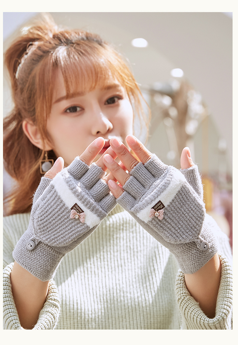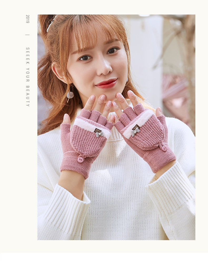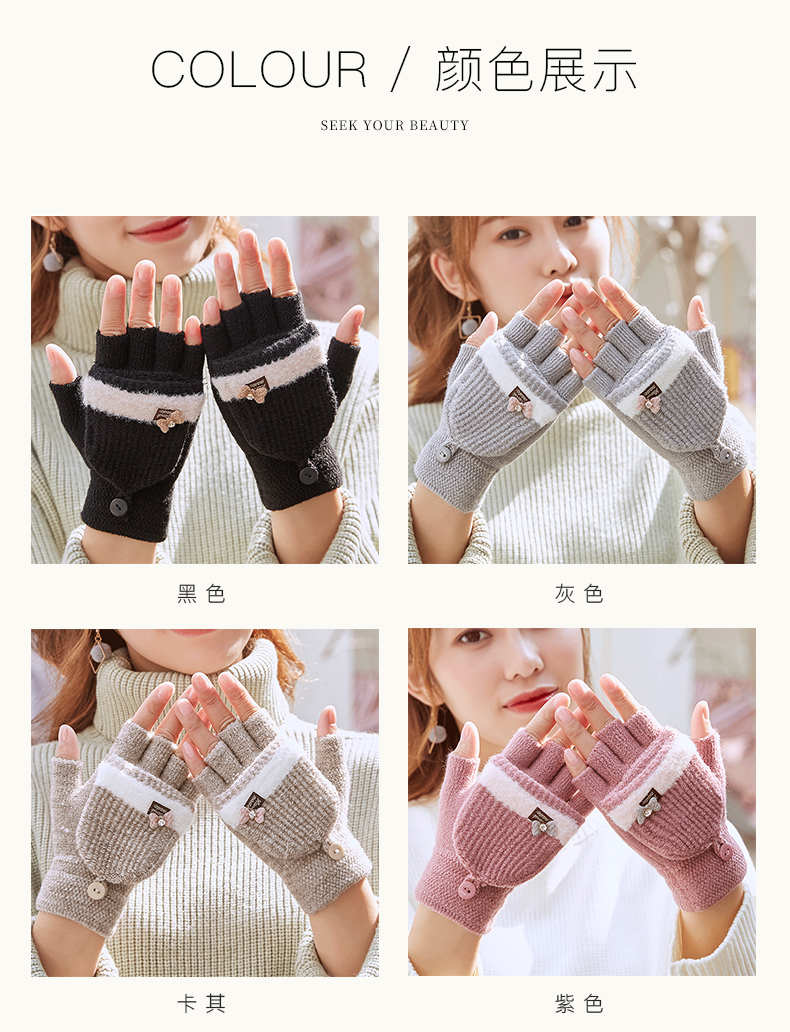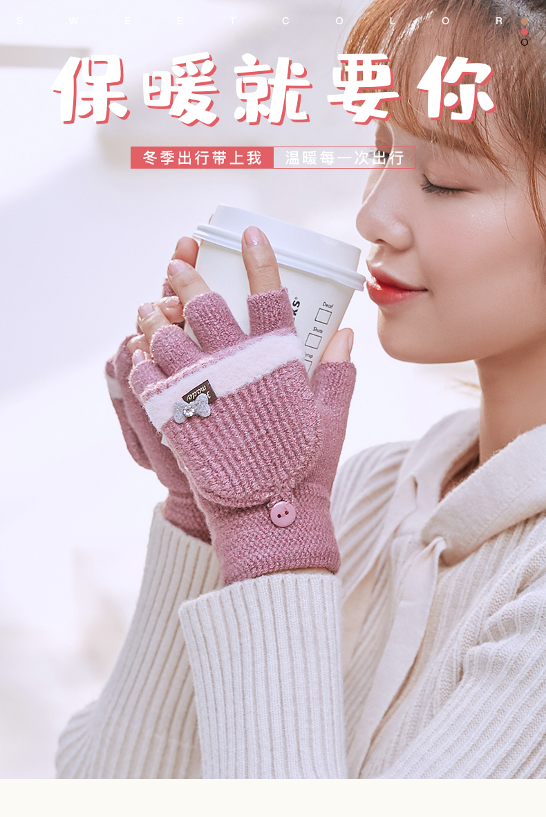 蝴蝶结装饰点缀,萌萌哒少女心~抖音女神专属翻盖手套,多款多色可选,青春俏皮款式,全指/半指随意变换,可爱加厚加绒,防风保暖不起球,买到就是赚到!速抢!