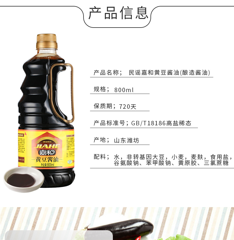 民谣嘉和生抽酱油800ml*2瓶