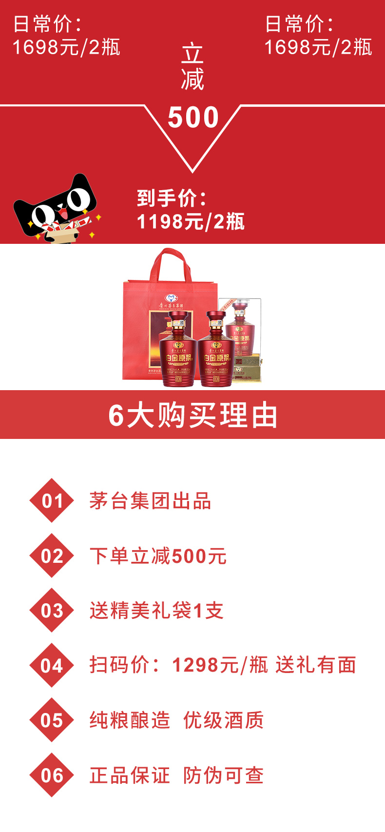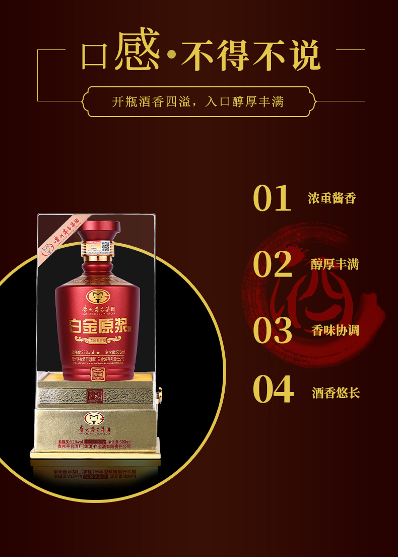 【高档礼盒装,假一赔十】正品贵州茅台酒,白金窖藏级原浆酒,茅台酒厂原厂出品,精选红缨高粱和南疆冬小麦,茅台历代传承工艺酿造,酱香私藏,滴滴珍酿,只因茅台,生而不凡!