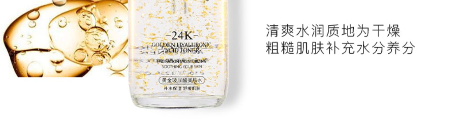 24K黄金护肤!甄选高品质黄金嫩肌原料,无重金属、酒精、矿物油等成分,烟酰胺+24K金,深度滋养,嫩肤亮颜,一套搞定,轻松抹出细腻光滑的肌肤,做个冻龄女神!