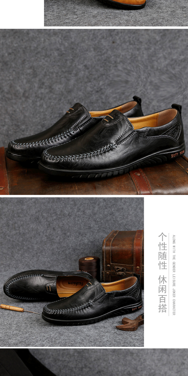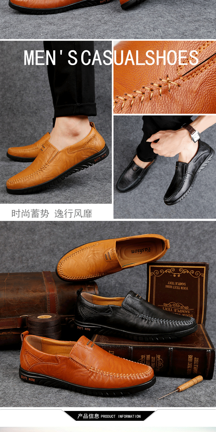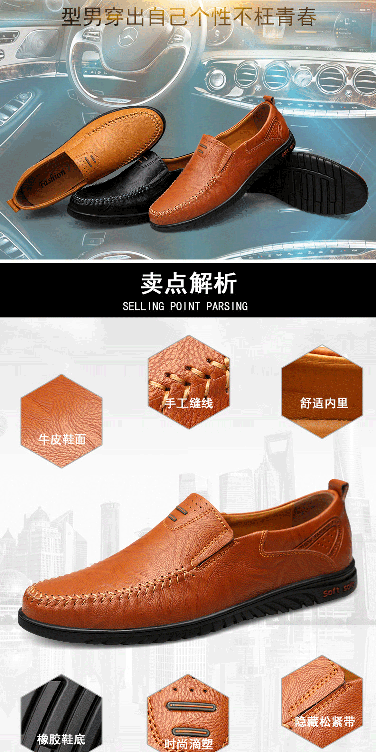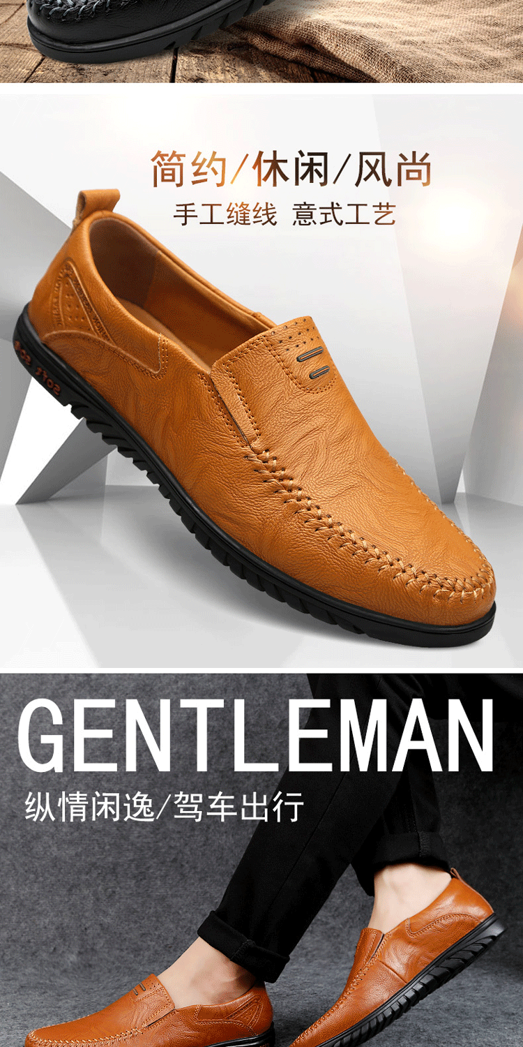 男士软皮套脚豆豆鞋时尚个性驾车鞋,细选头层牛皮,纹理清晰,手感柔软细腻,经久耐穿,具有良好的透气性。实惠更超值!