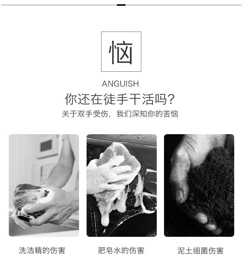 徒手洗东西对手的伤害太大了,该给自己买双家务手套了!不管是厨房做饭、卫浴清洁还是洗衣服都可以戴上它,PVC材质,防滑颗粒穿戴设计,穿戴轻松,亲肤舒适,呵护您的纤纤玉手~轻轻松松搞定家务~