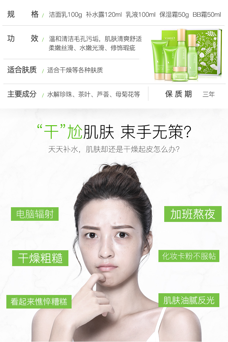 【买就金刚面膜】植萃润养补水五件套,国货经典,萃取济州岛新鲜绿茶,帮助肌肤补水保湿,水油平衡不油腻,保湿美白一套到位!!