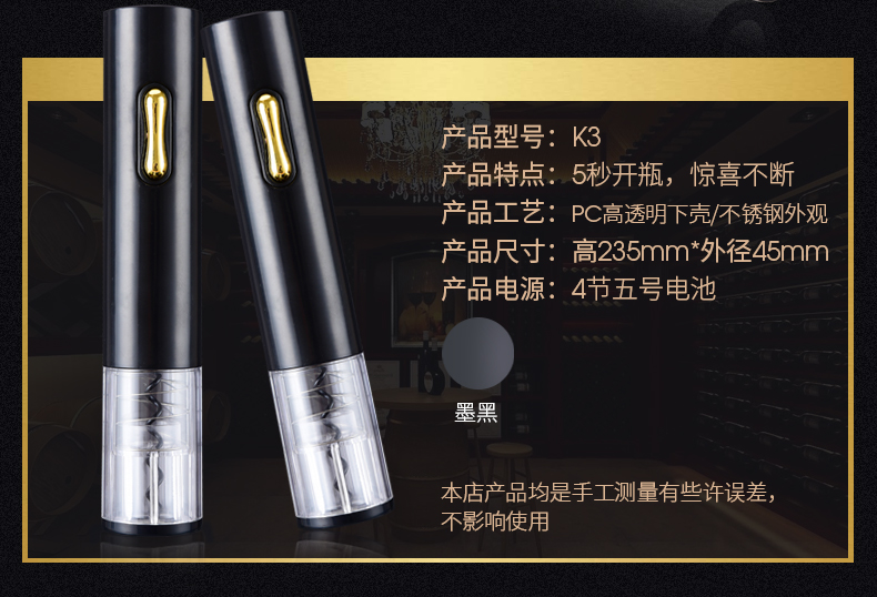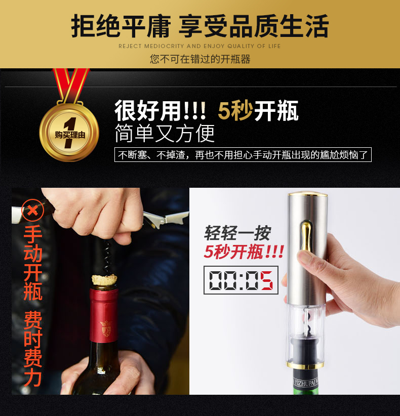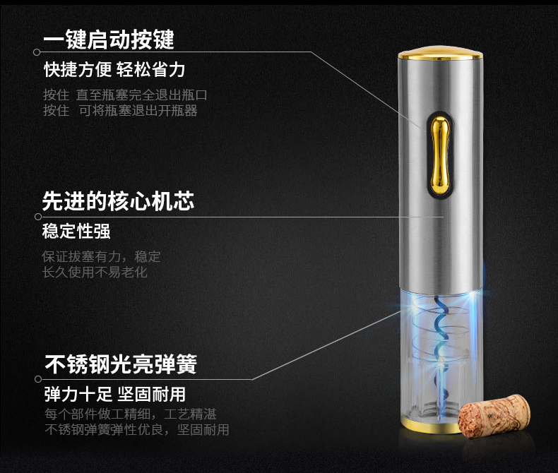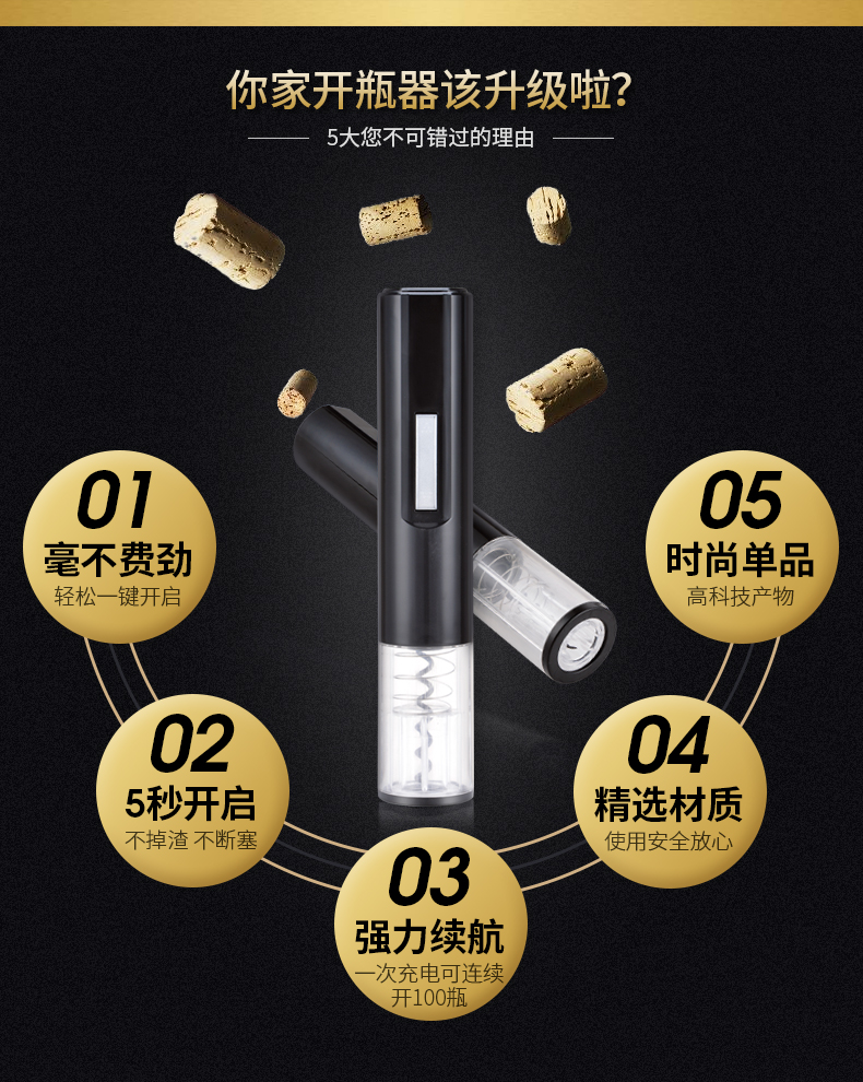 5秒快速开瓶,酒塞不掉渣,轻松不费力,不伤手,经久耐用黑钻头,品质好,特高档,送亲友、长辈的选择【赠运费险】